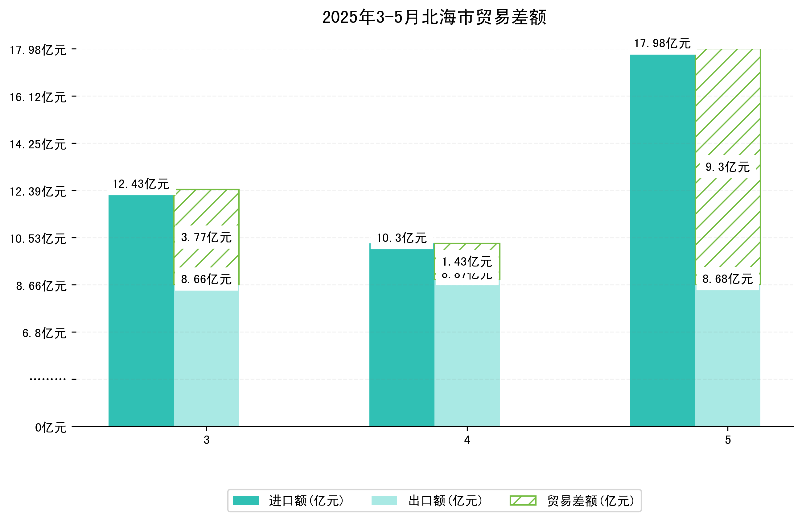 以美元计,2025年1-5月北海市贸易差额为6,9794,7588万美元(贸易顺差),相比上年同期增加了8,4294,5085万美元,同比增加-581.35%。