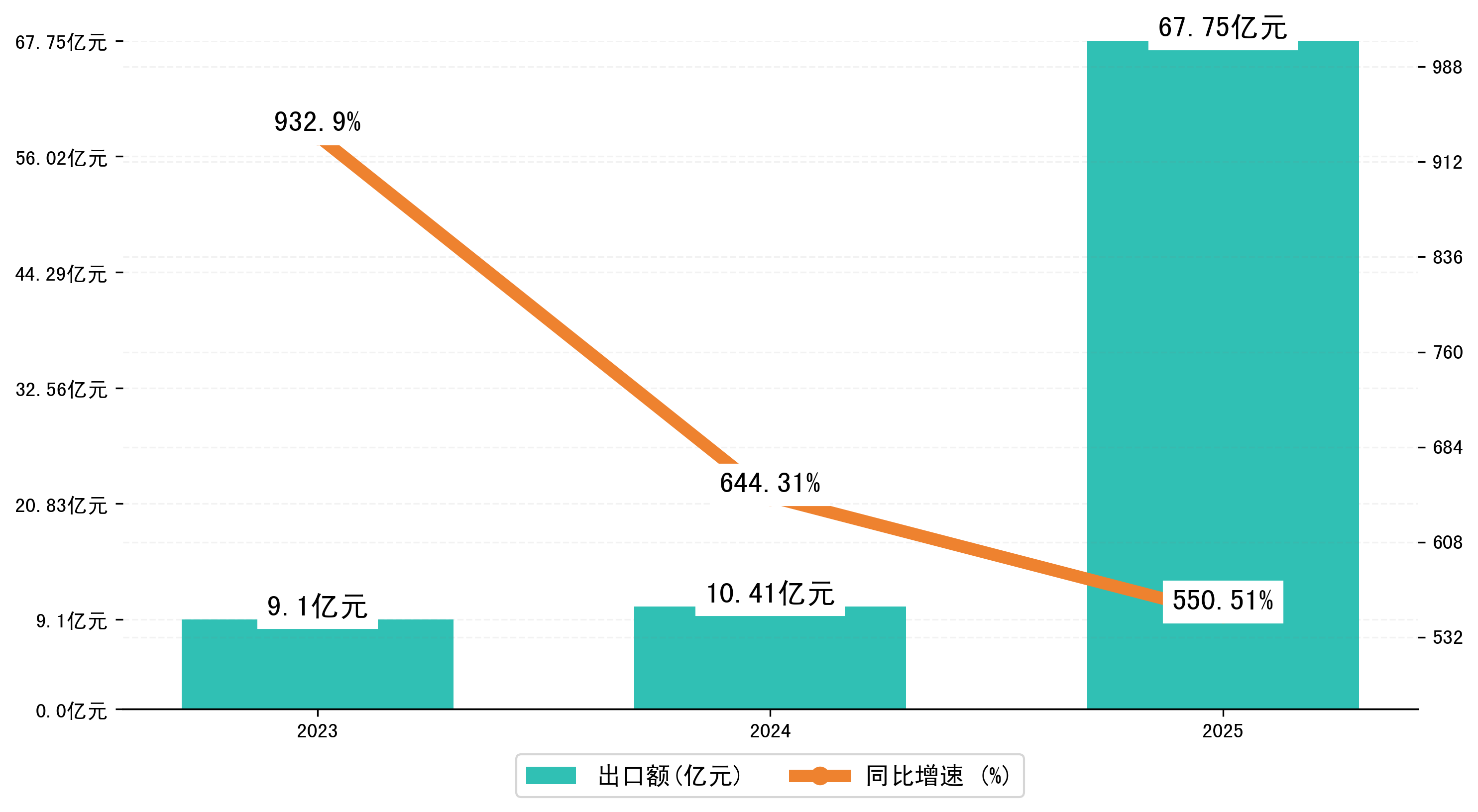以人民币计,2025年1月北海市出口额为67,7489.9644万元,相比上月增加了16,5987.5287万元;相比上年同期增加了57,3342.956万元,同比增加了550.60%。