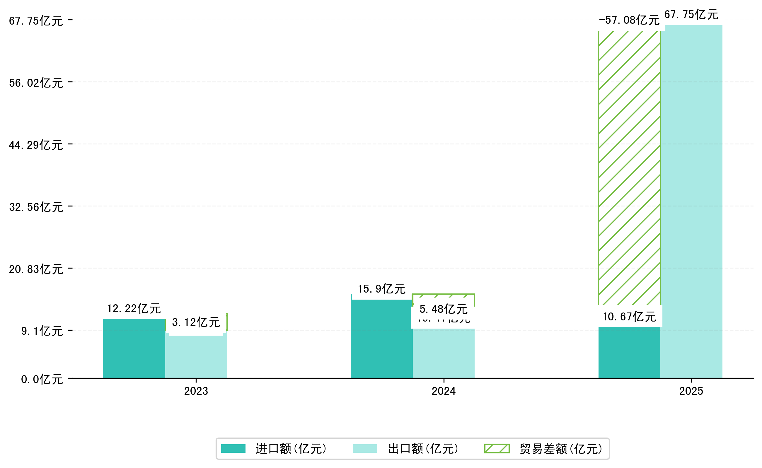 以人民币计,2025年1-1月北海市贸易差额为57,0831,0985万元(贸易顺差),相比上年同期增加了62,5669,0235万元,同比增加-1140.94%。