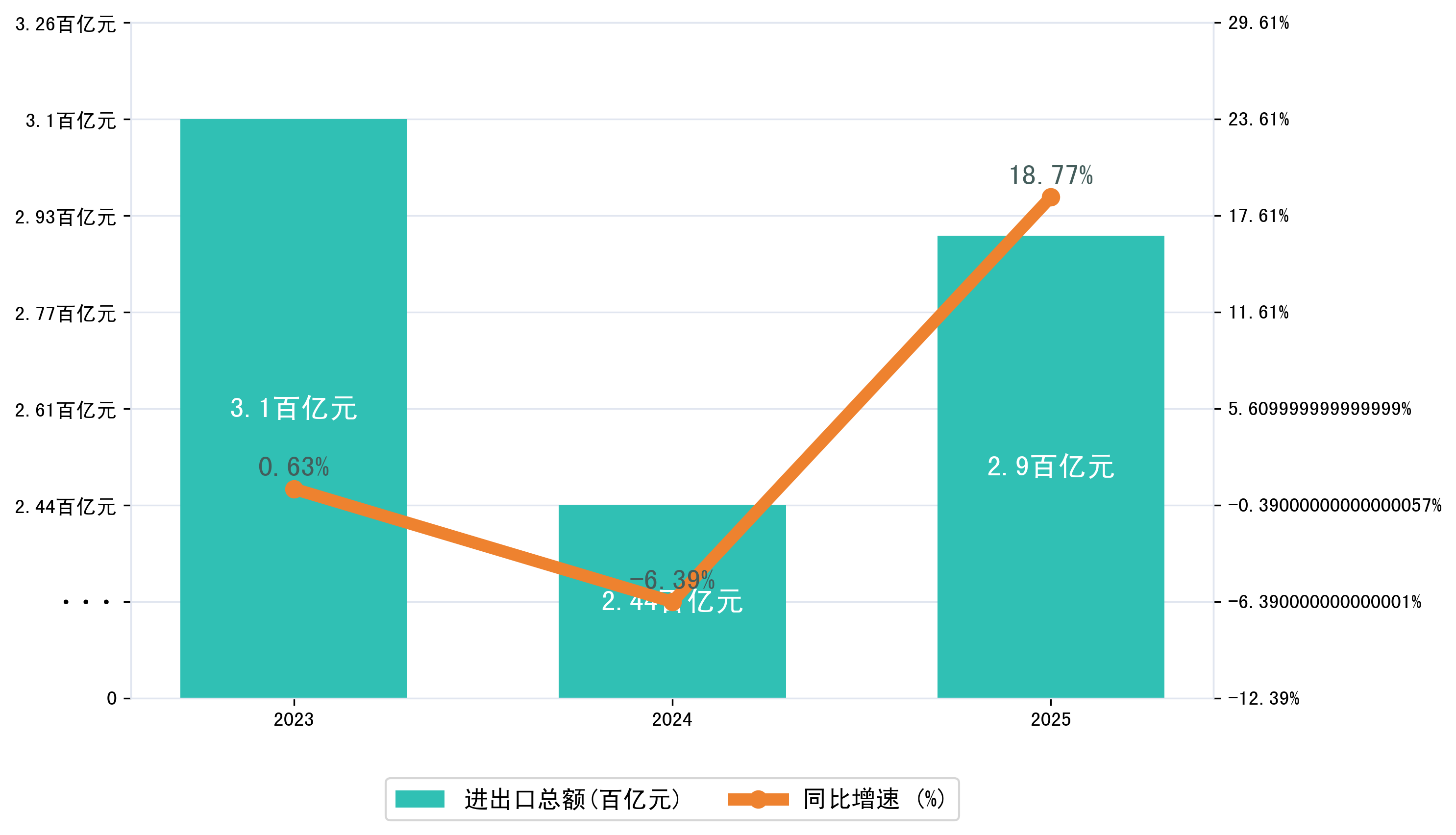 以美元计,2025年1-10月北海市进出口总额为40,4216.4848万美元,相比上年同期增加了6,0856.5708万美元,同比增加17.80%。