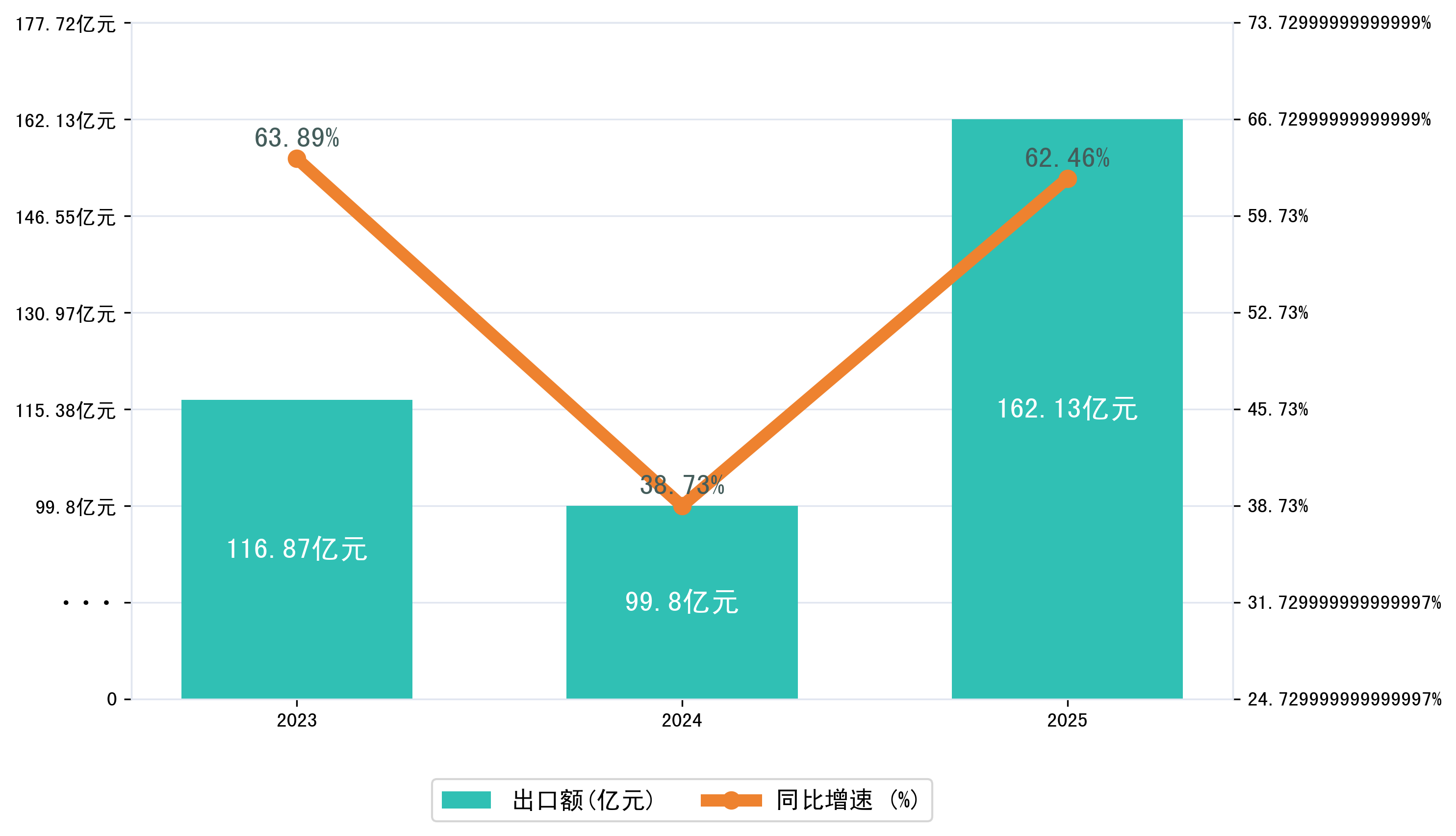 以人民币计,2025年1-10月北海市出口额为162,1345.7302万元,相比上年同期增加了62,3362.0037万元,同比增加了62.50%。