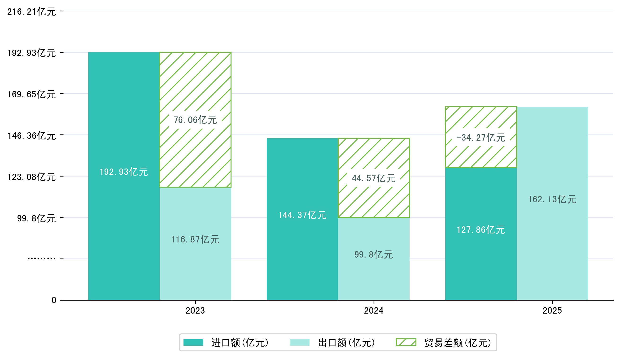 以人民币计,2025年1-10月北海市贸易差额为34,2740,9372万元(贸易顺差),相比上年同期增加了78,8483,9992万元,同比增加-176.89%。