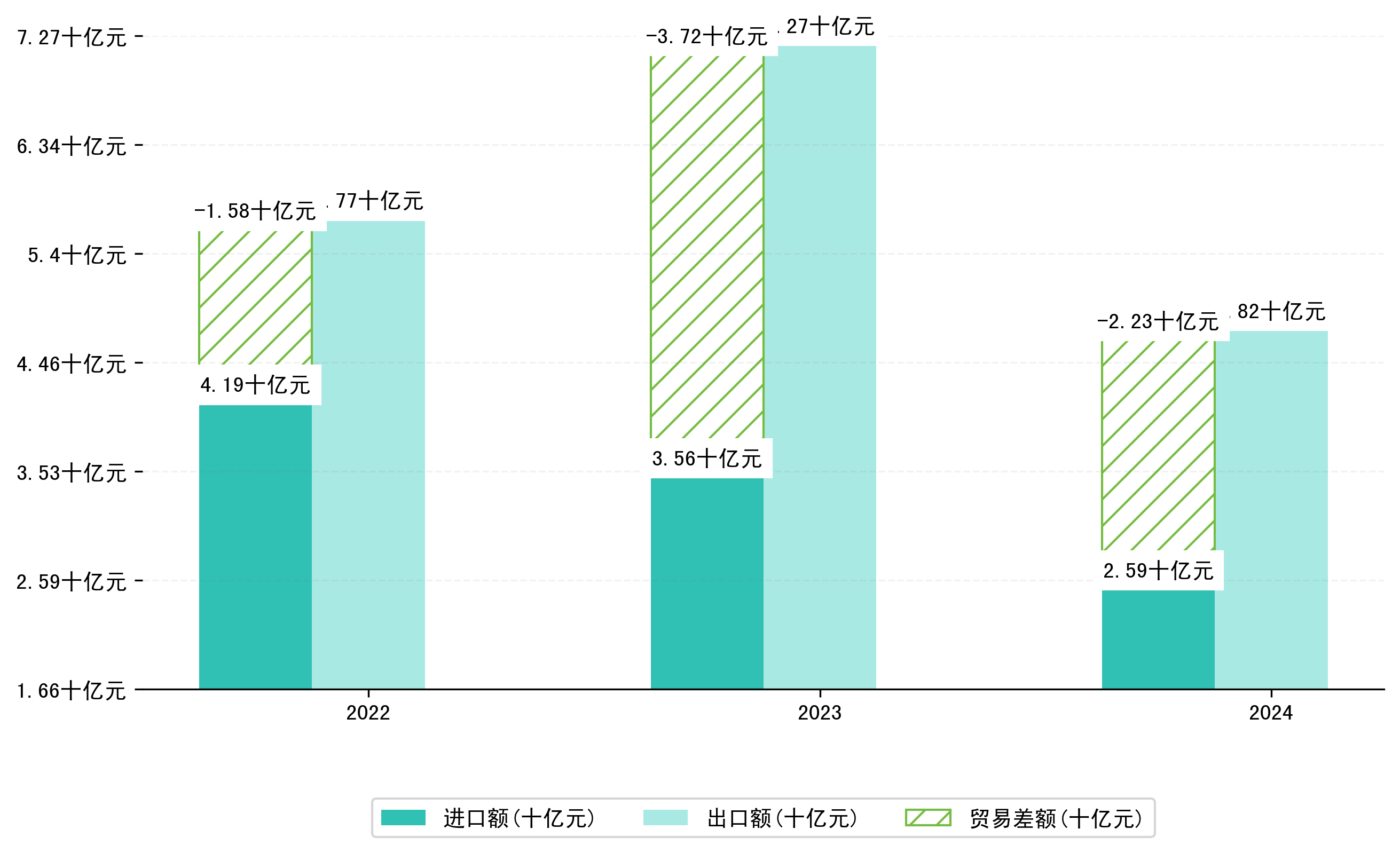 以人民币计,2024年1-6月蚌埠市贸易差额为22,2945,0279万元(贸易顺差),相比上年同期减少了14,8738,8586万元,同比减少-40.02%。