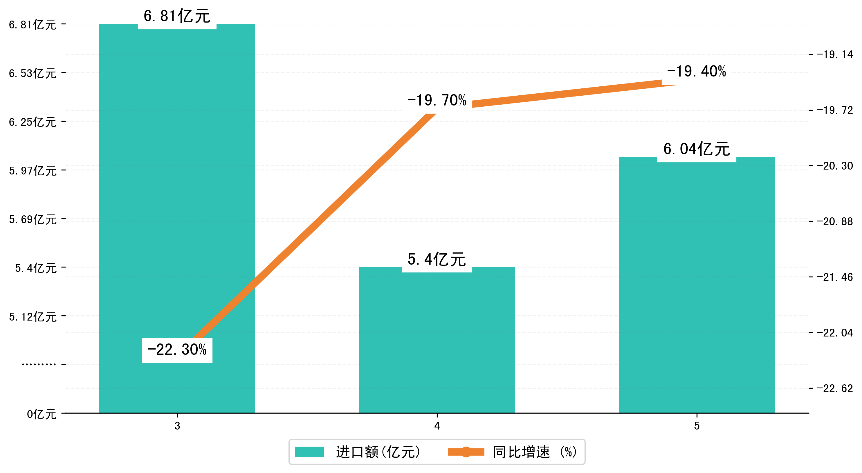 以人民币计,2023年5月蚌埠市进口额为6,0414.9397万元,相比上月增加了6370.1844万元;相比上年同期减少了1,3096.9335万元,同比减少了-19.40%。