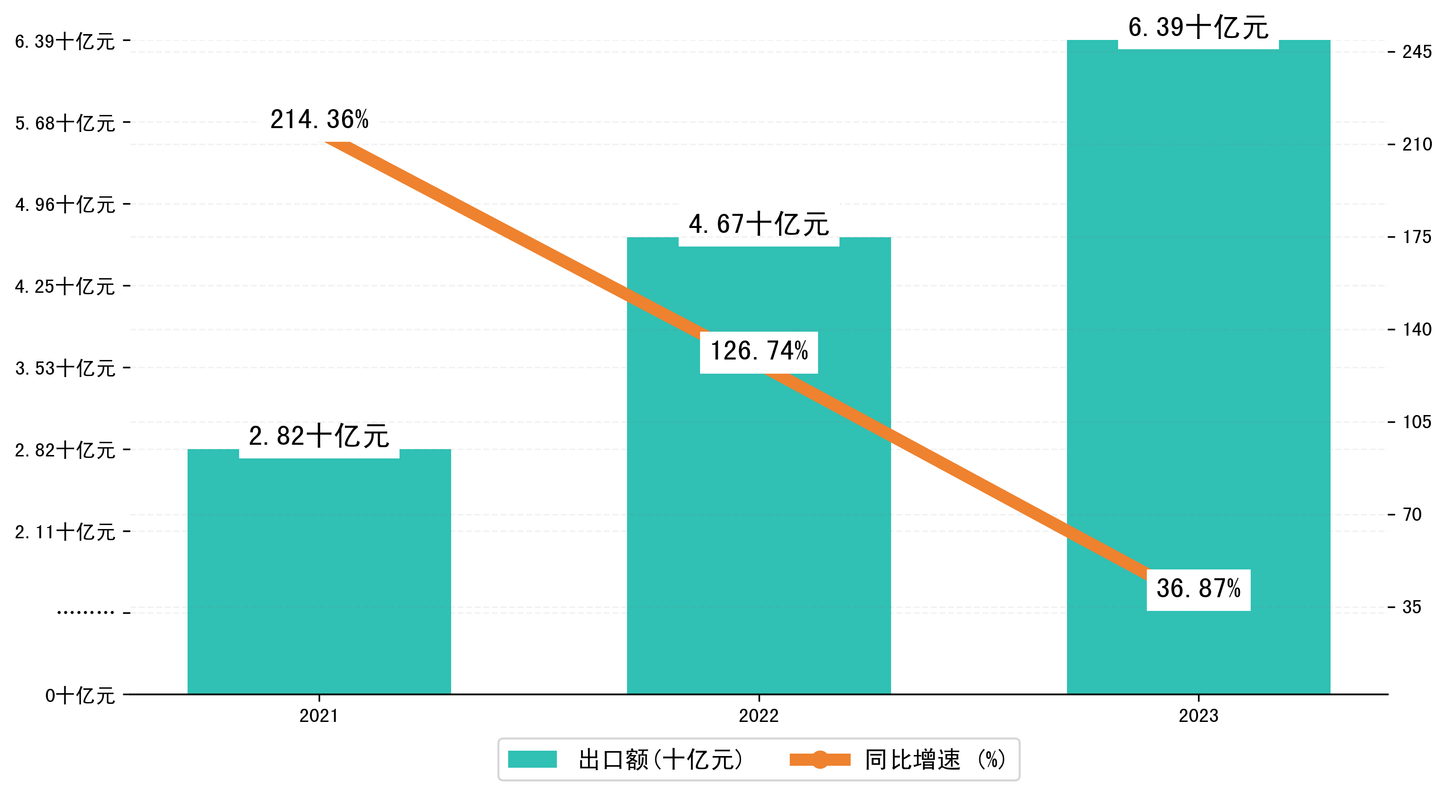 以人民币计,2023年1-5月蚌埠市出口额为63,9398.0584万元,相比上年同期增加了17,2235.7759万元,同比增加了36.90%。