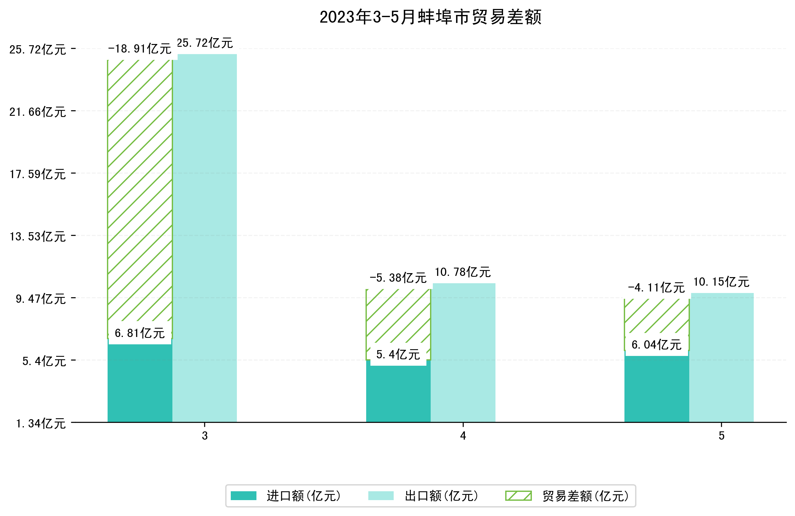 2023年5月蚌埠市进出口总额及进出口差额统计分析