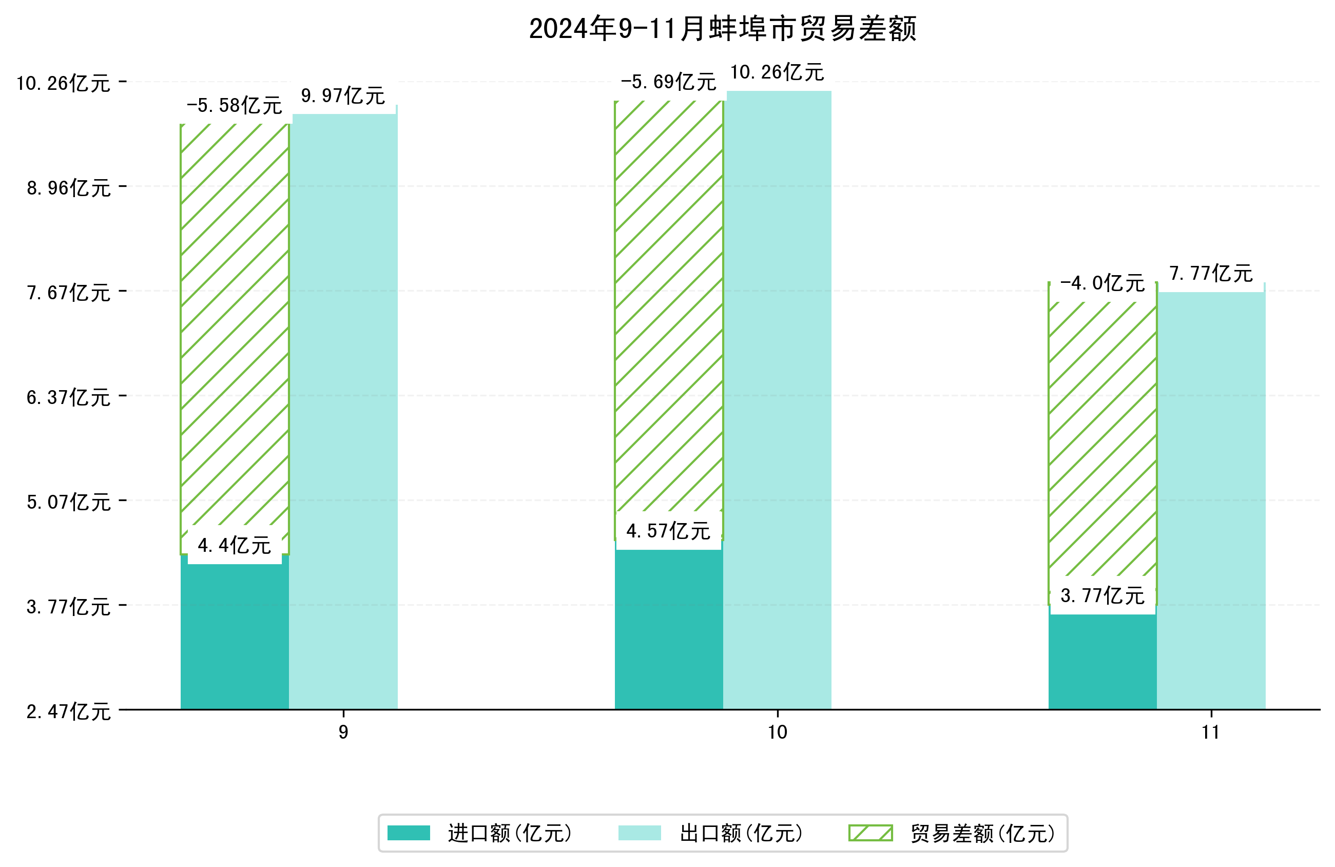 2024年11月蚌埠市进出口总额及进出口差额统计分析