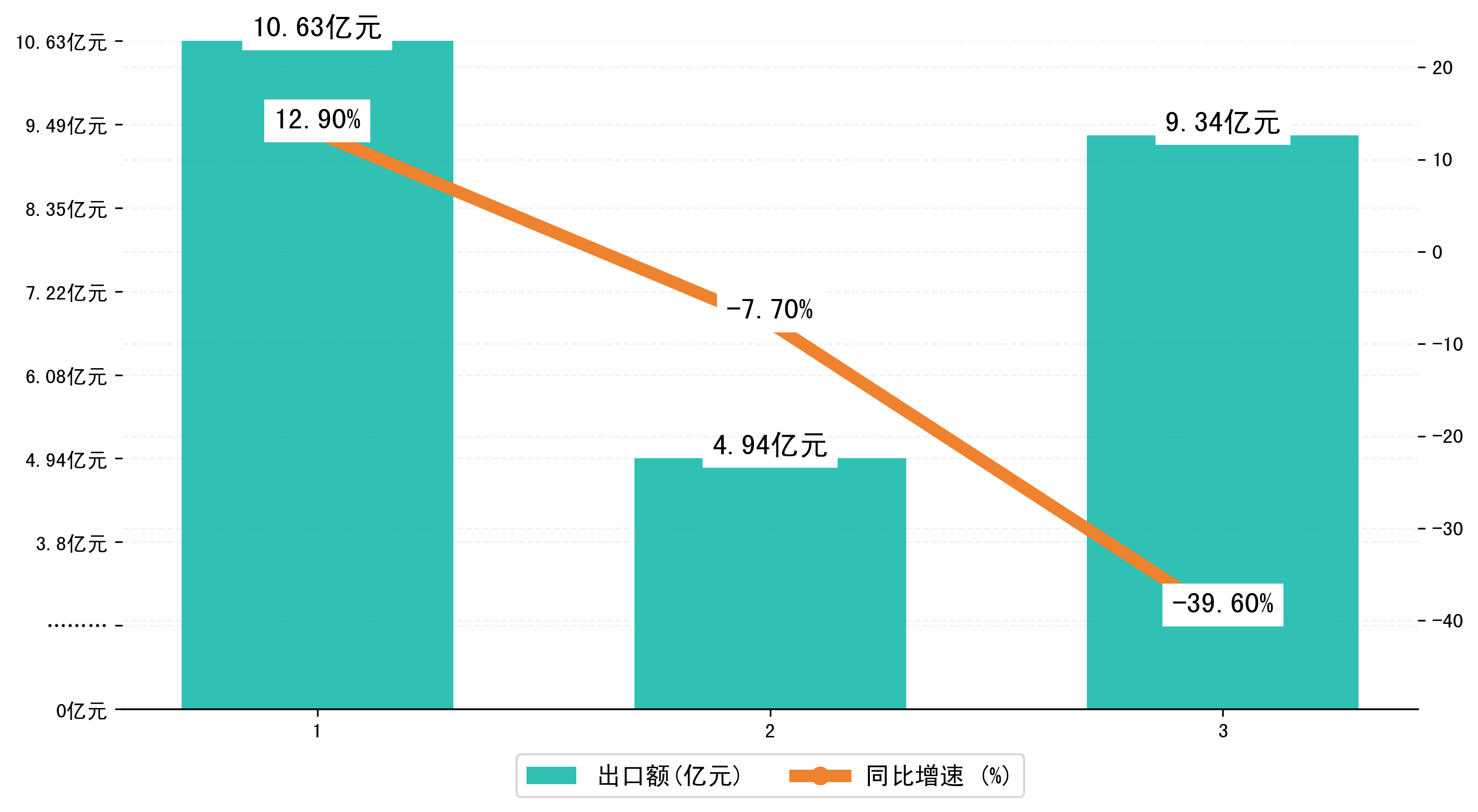 以人民币计,2024年3月蚌埠市出口额为9,3391.8036万元,相比上月增加了4,4023.5887万元;相比上年同期减少了16,3824.4575万元,同比减少了-39.60%。