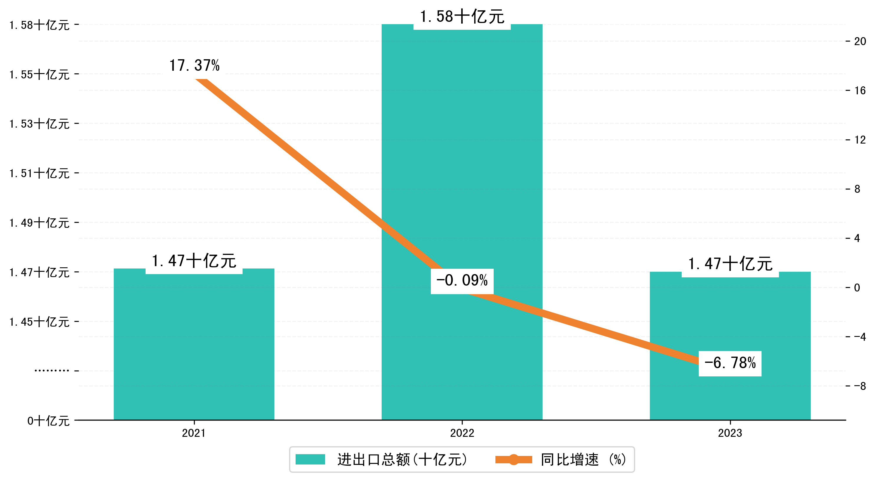 以人民币计,2023年1-1月蚌埠市进出口总额为14,6878.806万元,相比上年同期减少了1,0681.6817万元,同比减少了-6.80%。