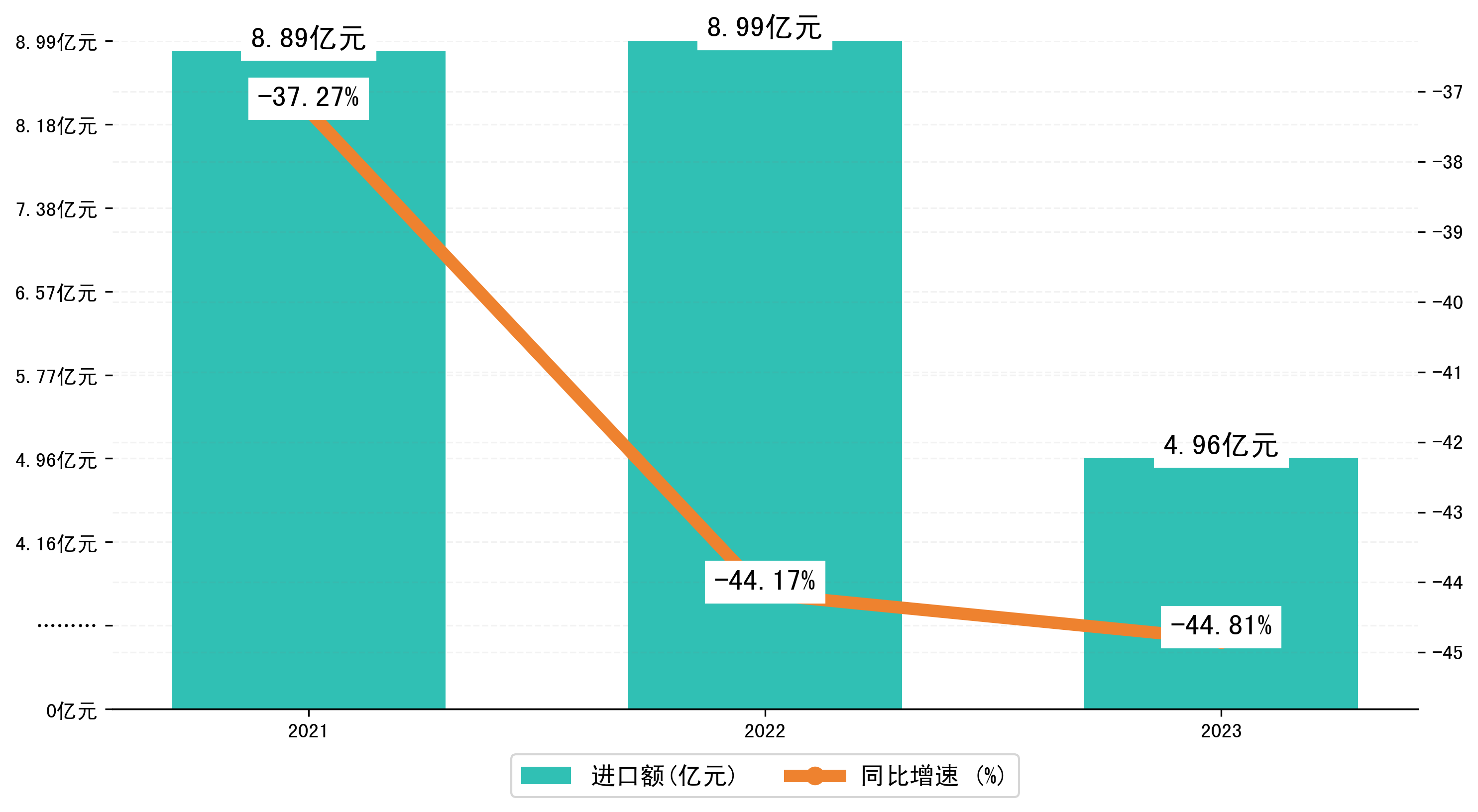 以人民币计,2023年1-1月蚌埠市进口额为4,9617.9023万元,相比上年同期减少了4,0283.8686万元,同比减少了-44.80%。