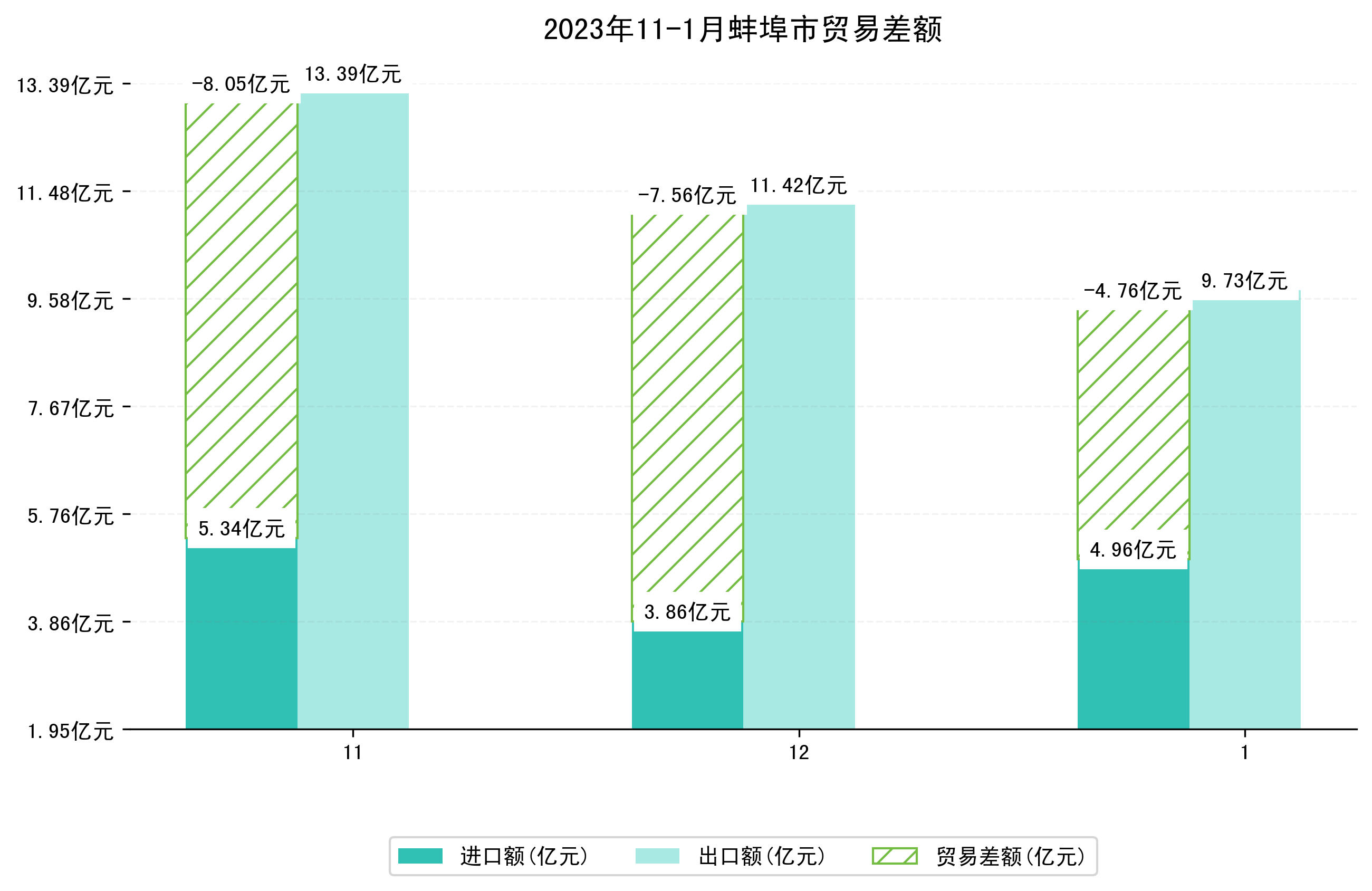 2023年1月蚌埠市进出口总额及进出口差额统计分析