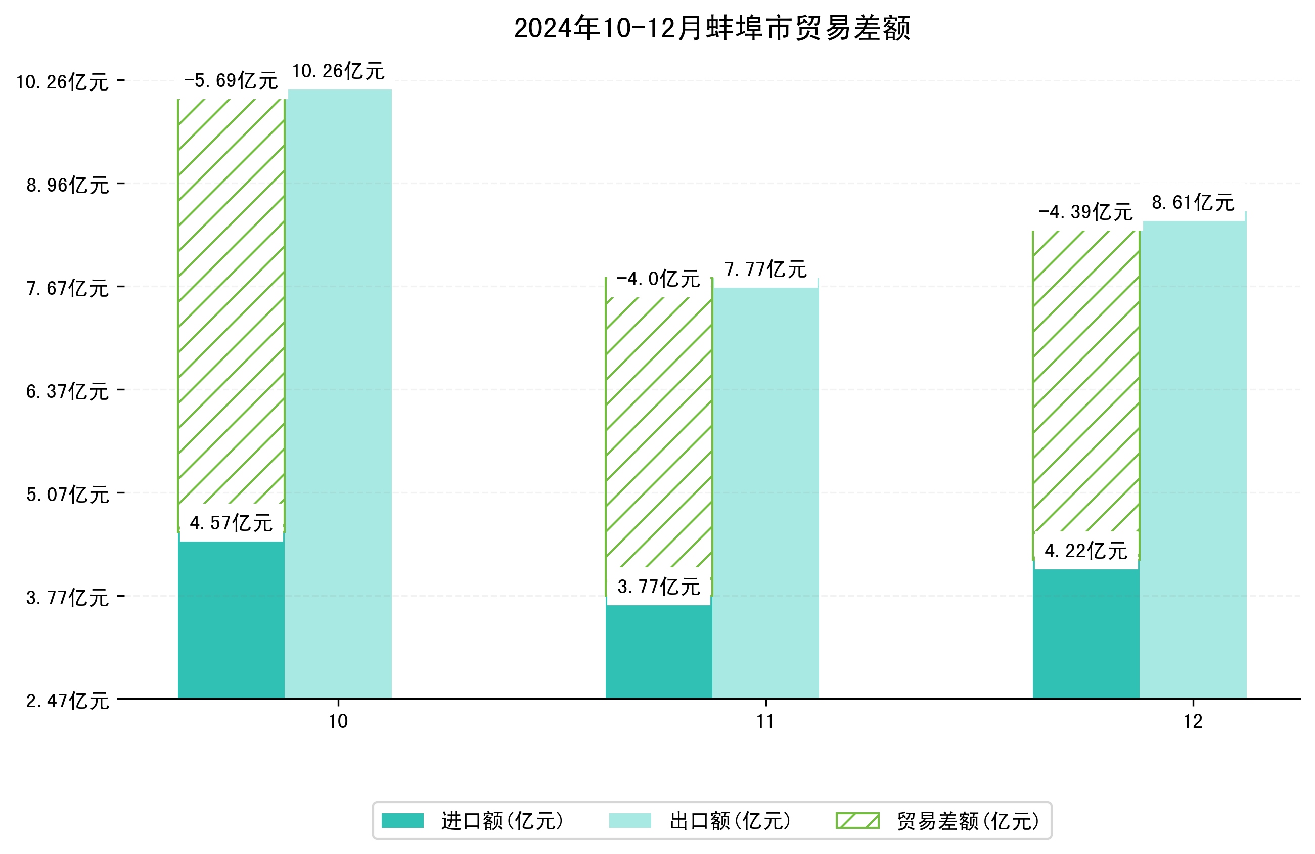 2024年12月蚌埠市进出口总额及进出口差额统计分析