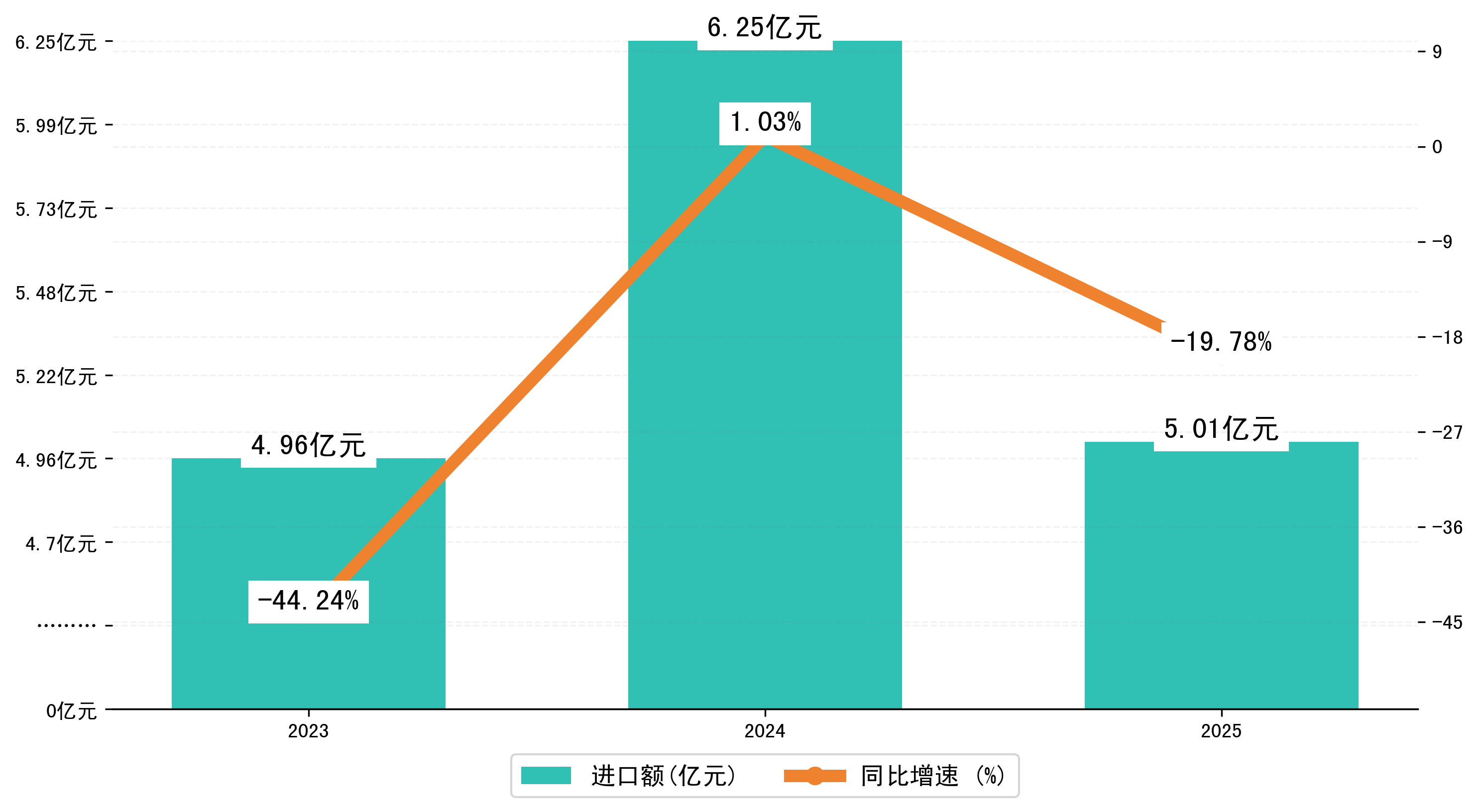 以人民币计,2025年1月蚌埠市进口额为5,0128.3121万元,相比上月增加了7906.1955万元;相比上年同期减少了1,2357.9824万元,同比减少了-19.80%。