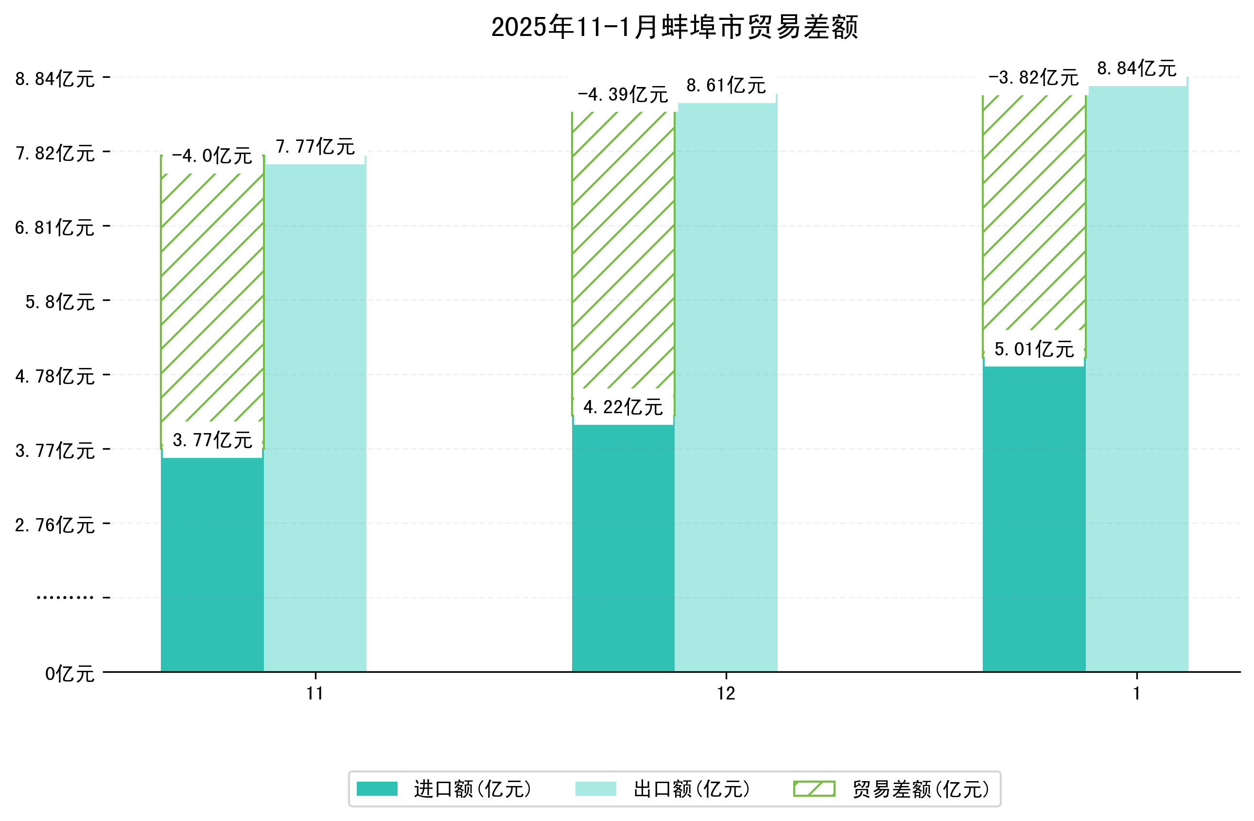 2025年1月蚌埠市进出口总额及进出口差额统计分析