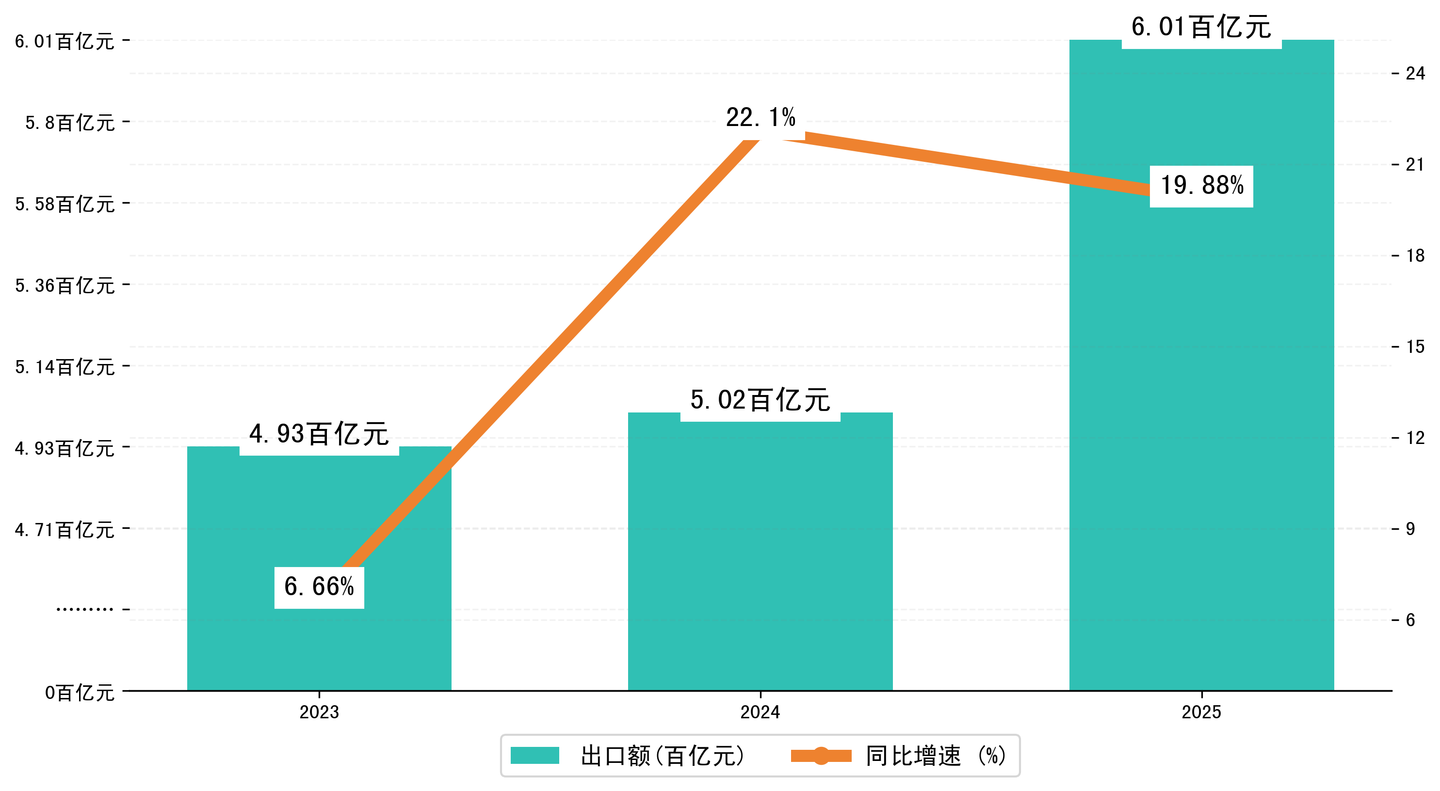 以人民币计,2025年1-8月石家庄市出口额为601,4618.0051万元,相比上年同期增加了99,7262.0727万元,同比增加了19.90%。