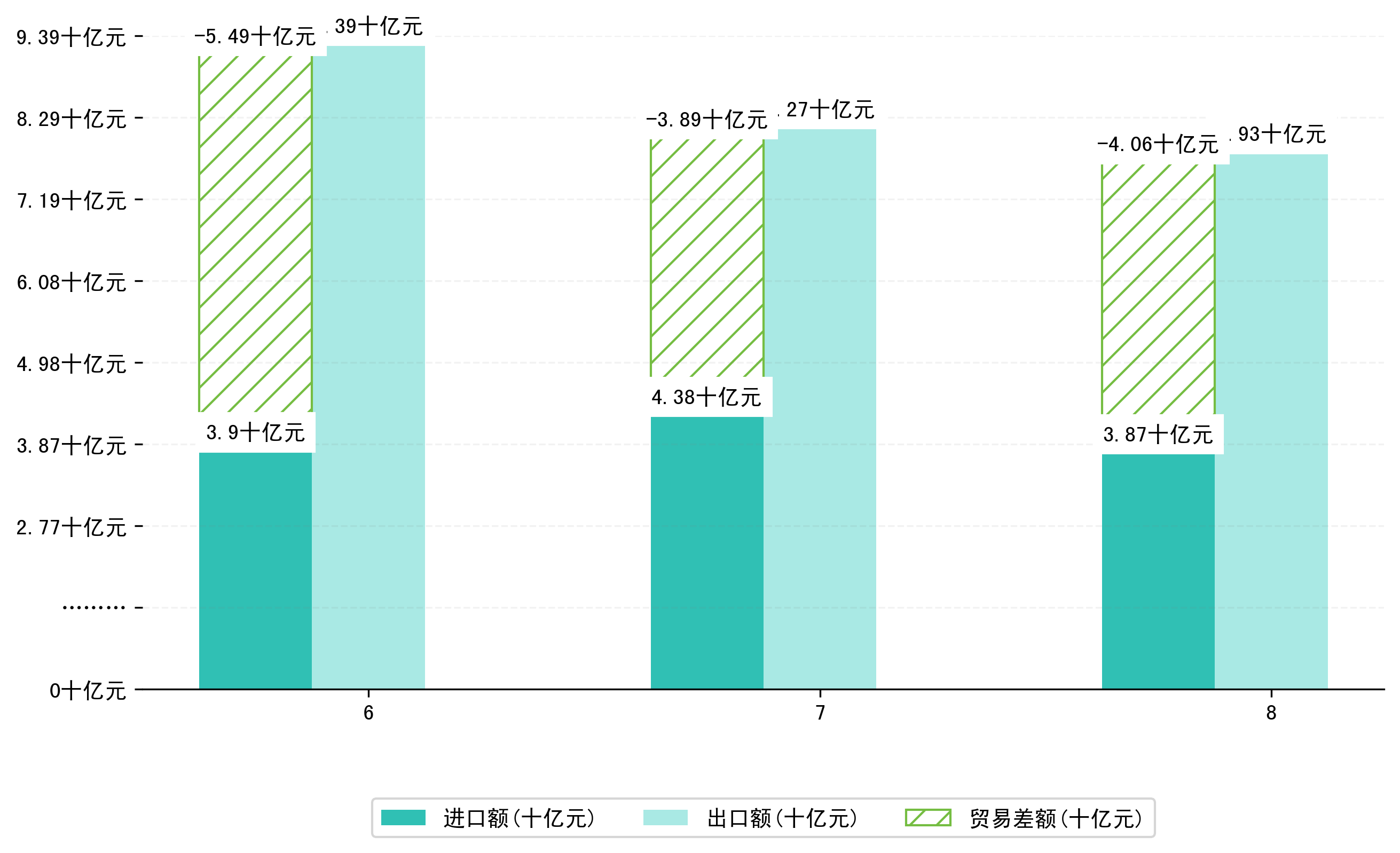以美元计,2025年1-8月石家庄市贸易差额为40,1393,7564万美元(贸易顺差),相比上年同期增加了19,6545,1388万美元,同比增加95.95%。