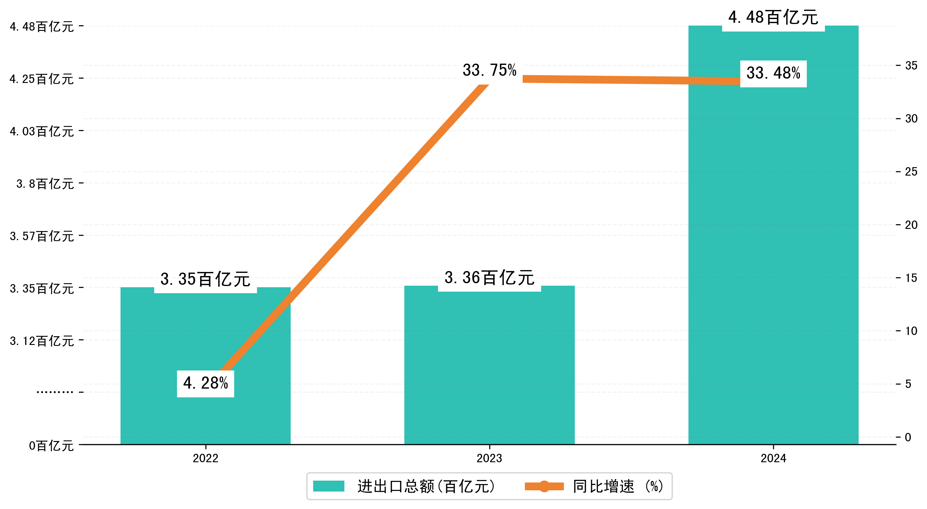 以人民币计,2024年1-4月长春市进出口总额为447,8418.4014万元,相比上年同期增加了112,3231.61万元,同比增加了33.30%。