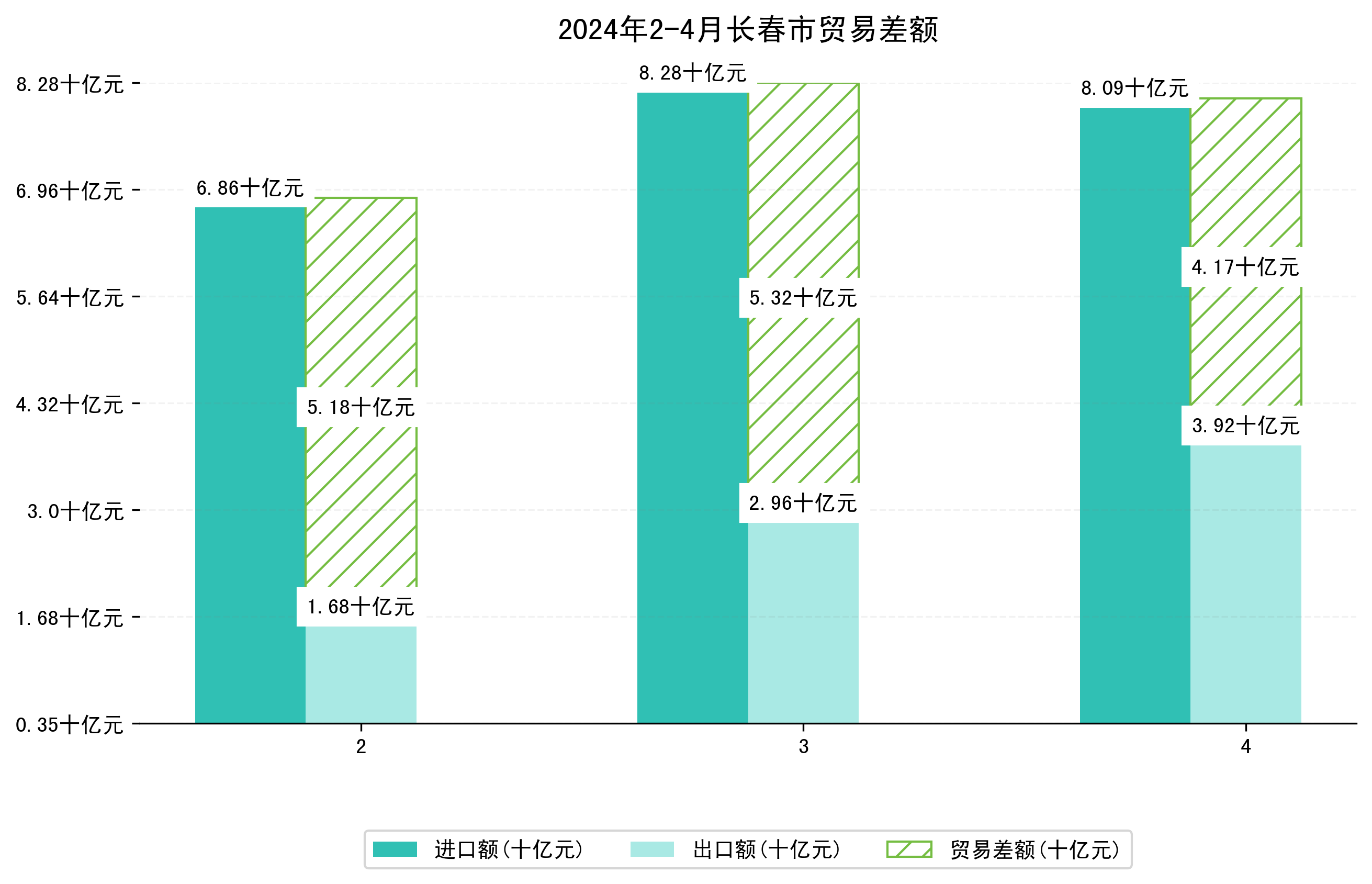 (图四:2024年2-4月长春市贸易差额)