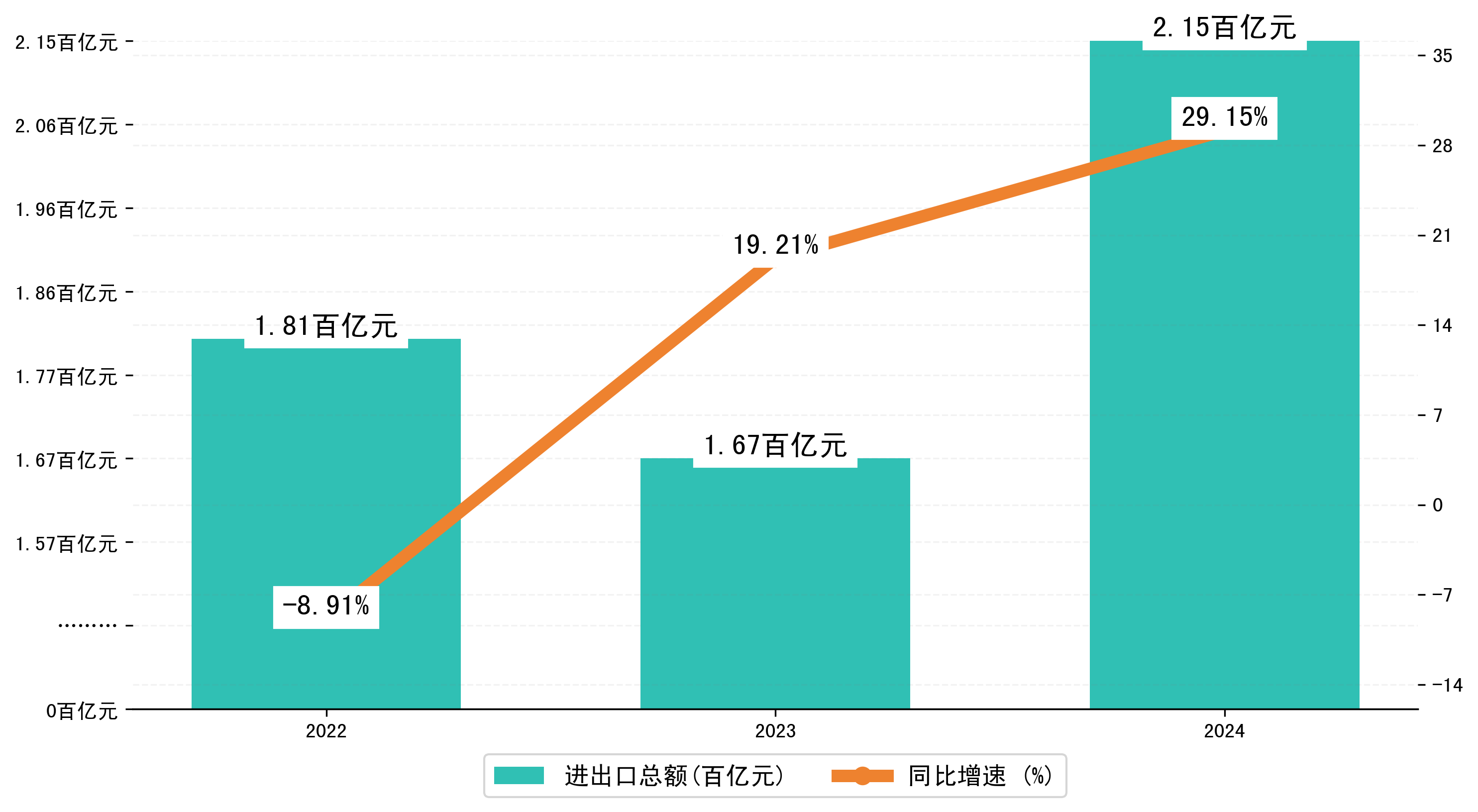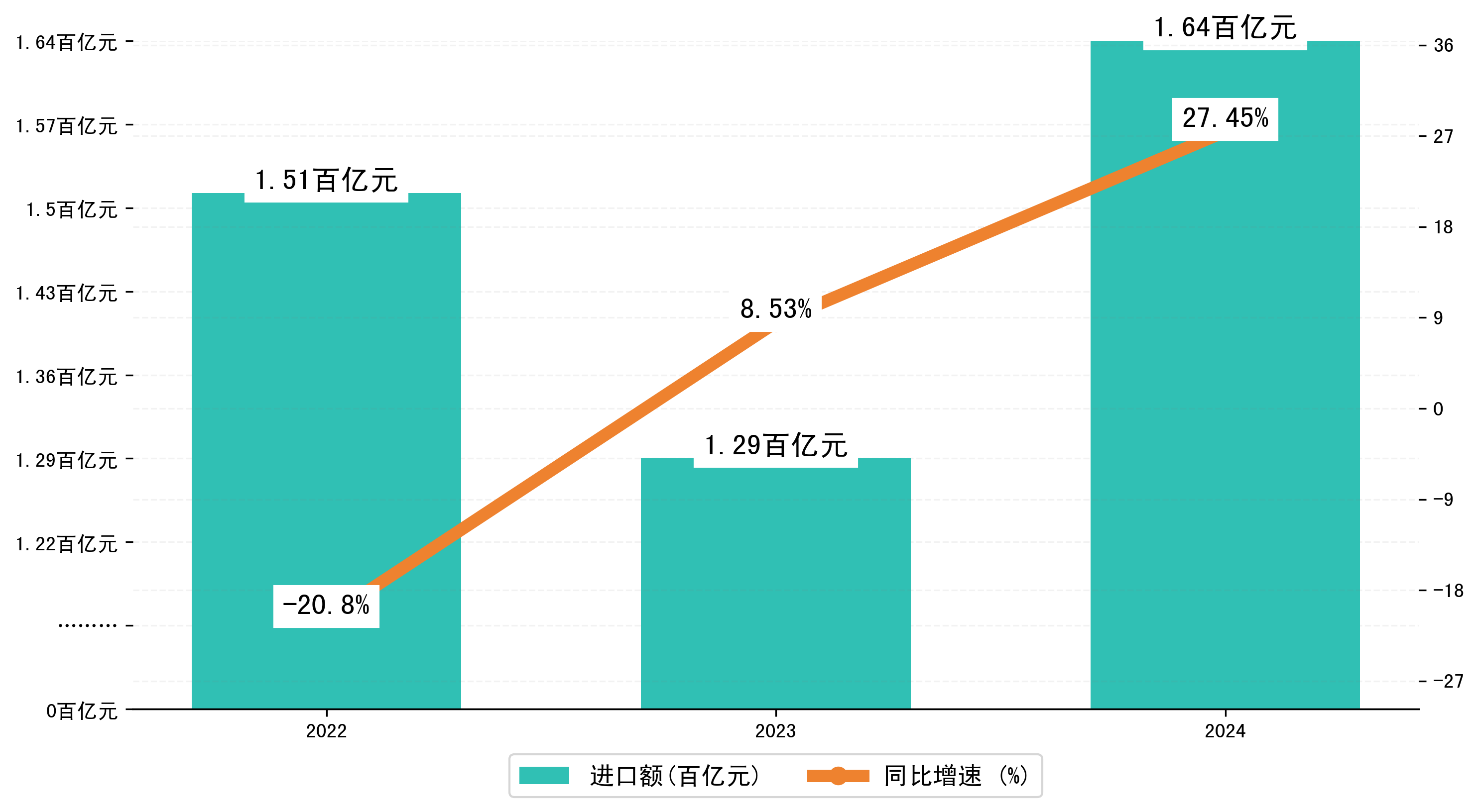 以人民币计,2024年1-2月长春市进口额为164,1855.8868万元,相比上年同期增加了35,3652.9301万元,同比增加了27.10%。