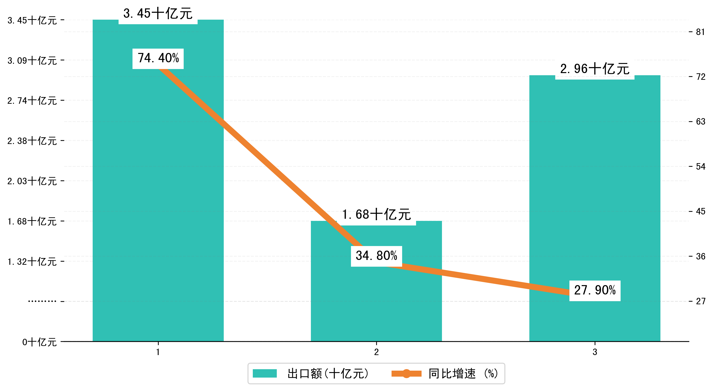 以人民币计,2024年1-3月长春市出口额为80,8321.1109万元,相比上年同期增加了17,6134.7131万元,同比增加了27.90%。