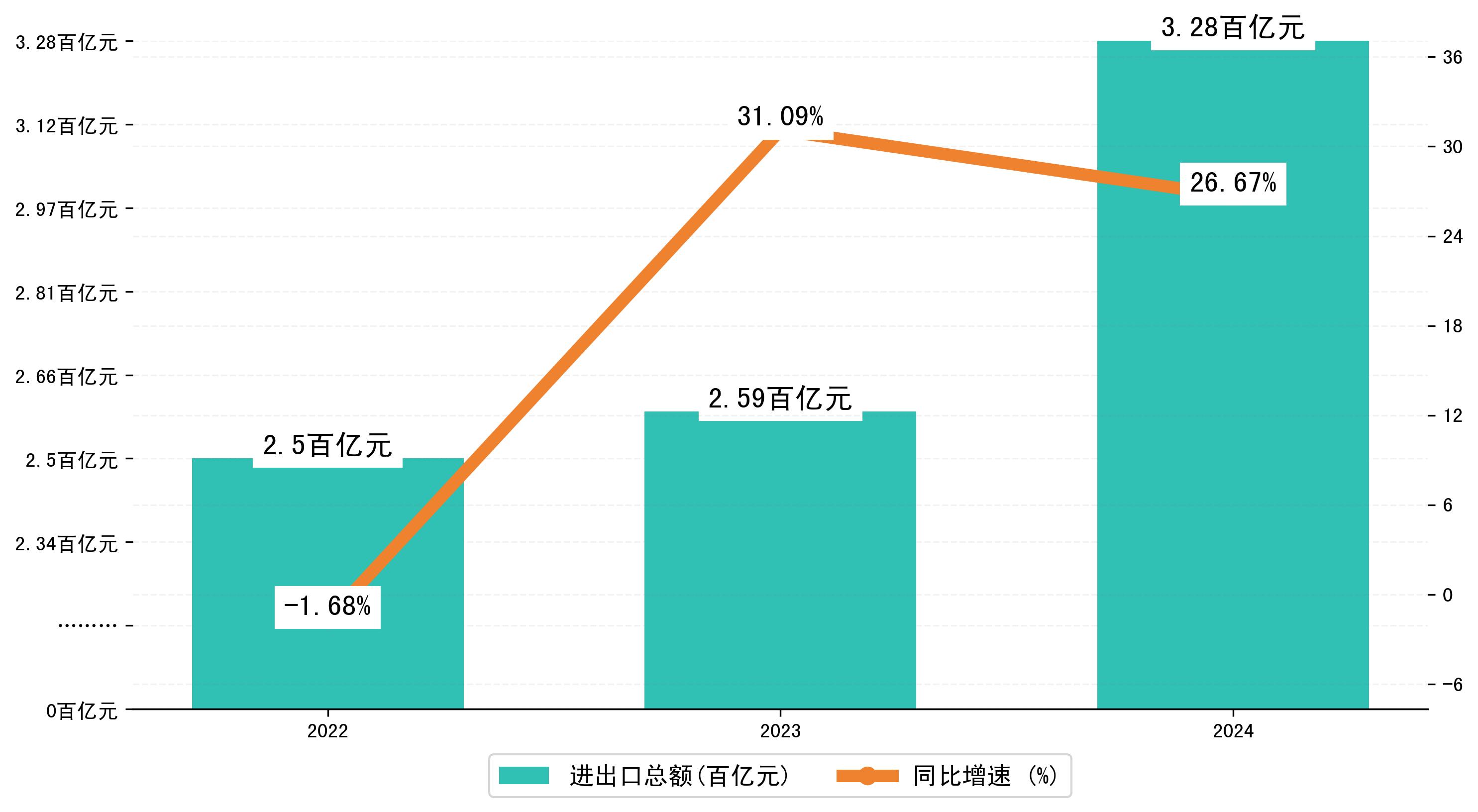 以人民币计,2024年1-3月长春市进出口总额为327,7938.0806万元,相比上年同期增加了69,0125.2382万元,同比增加了26.50%。