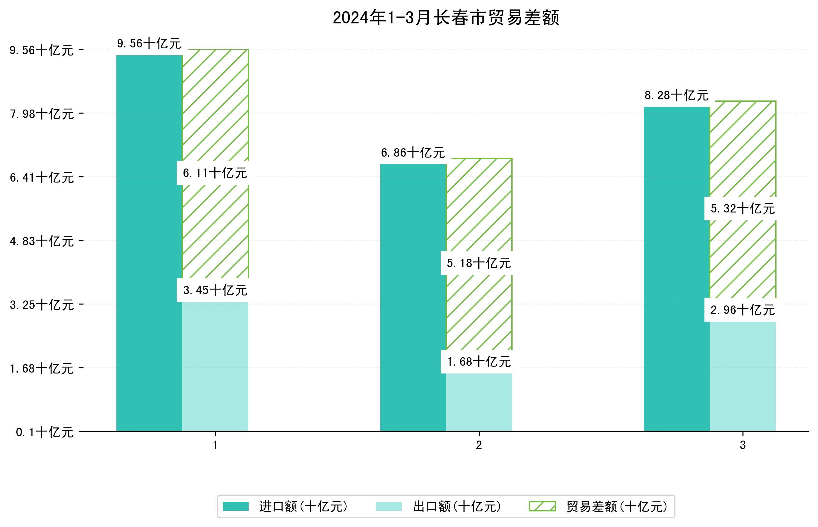 以人民币计,2024年3月长春市贸易差额为53,1805,2756万元(贸易逆差),相比上月减少了1,3362,3712万元,即1600,7273万美元;相比上年同期减少了11,6585,3260万元,同比减少28.08%。