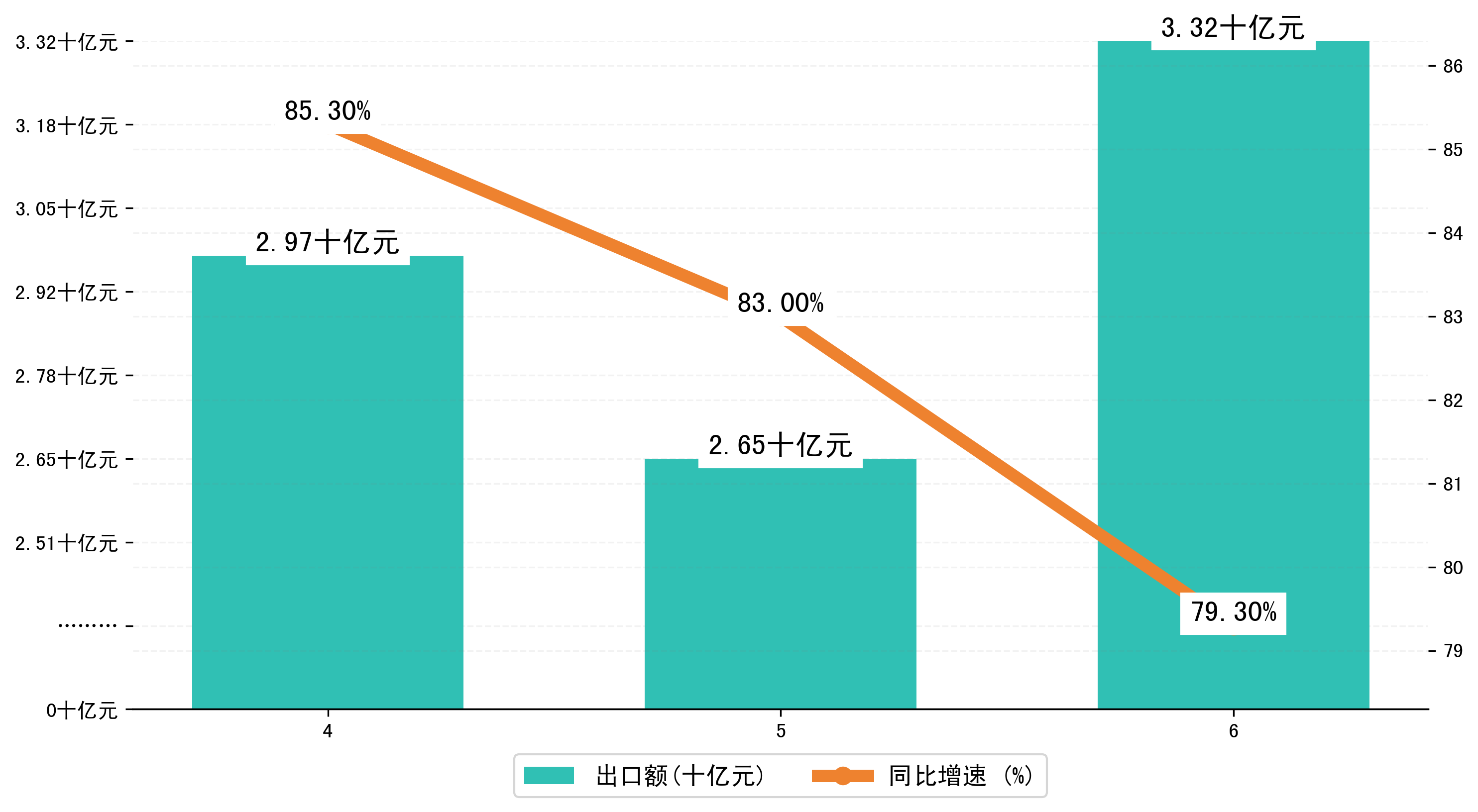 以美元计,2023年6月长春市贸易差额为6,3462,4247万美元(贸易逆差),相比上月减少了7585,0003万美元;相比上年同期增加了3,2863,3568万美元,同比增加-34.12%。