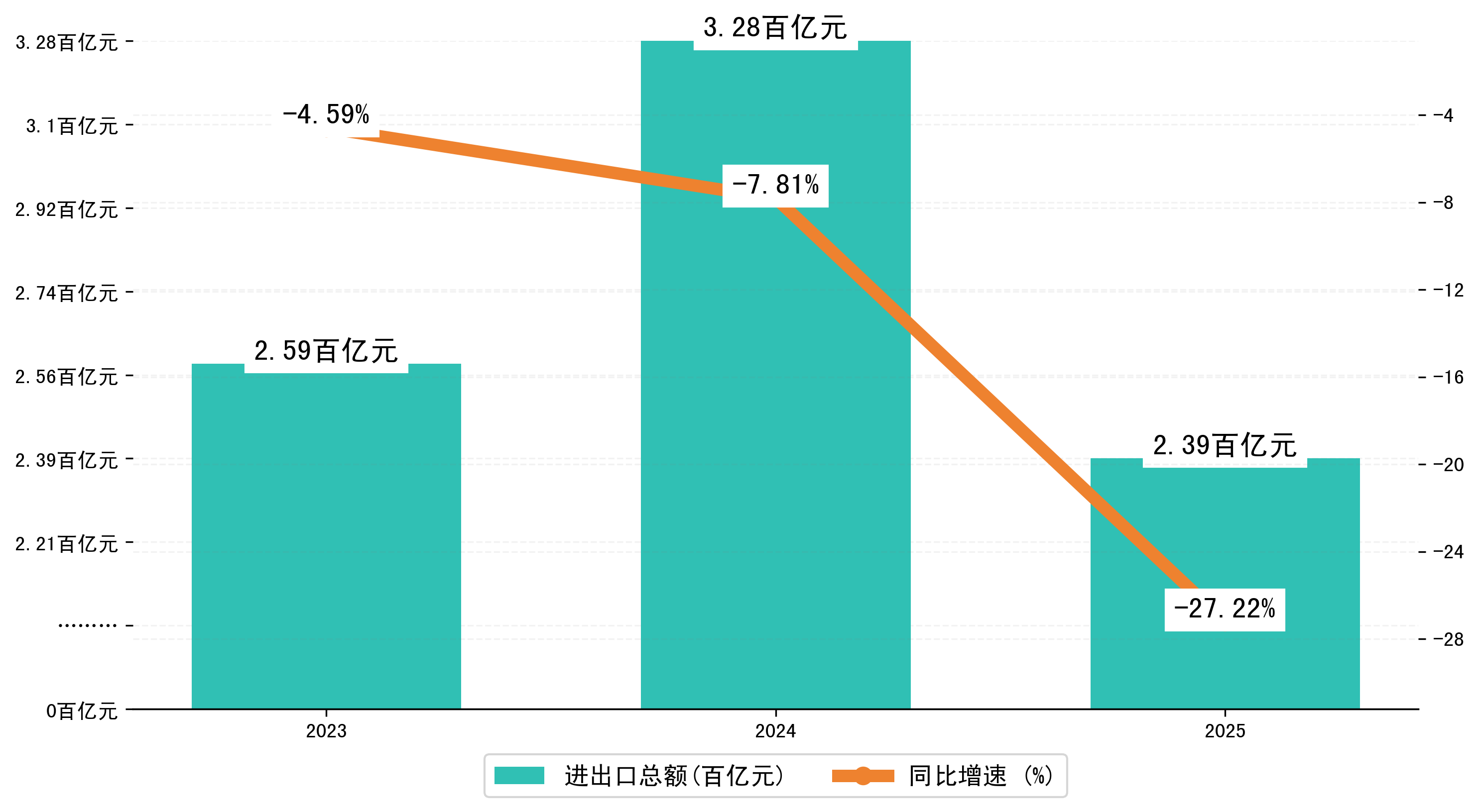 以人民币计,2025年1-3月长春市进出口总额为238,5729.5834万元,相比上年同期减少了89,2208.4972万元,同比减少了-27.20%。