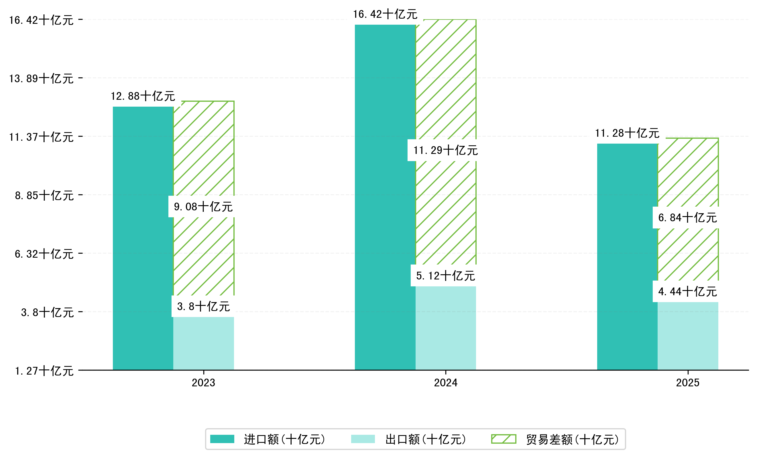 以人民币计,2025年2月长春市贸易差额为49,9168,1798万元(贸易逆差),相比上月减少了31,3999,4580万元,即4,3551,0506万美元;相比上年同期增加了1,9274,7246万元,同比增加-3.72%。