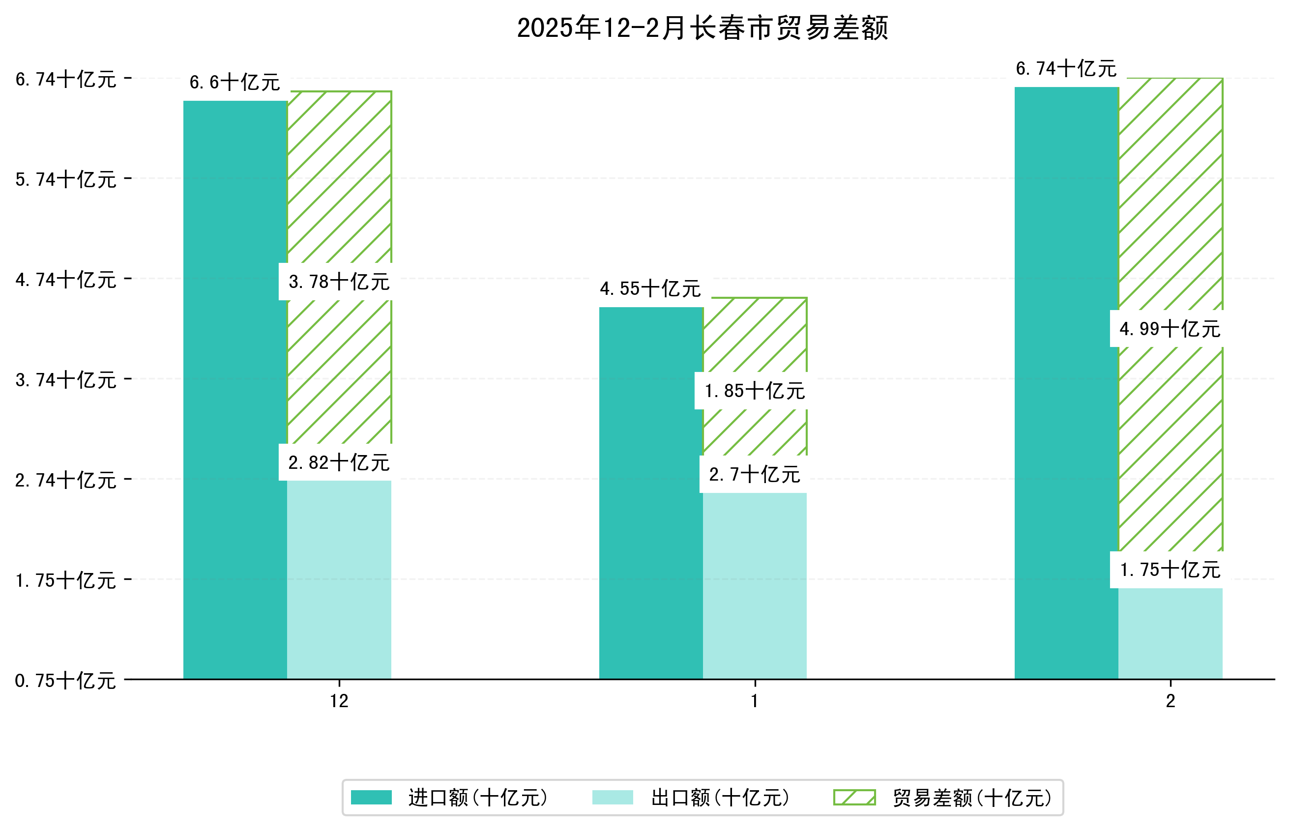 一、2025年2月长春市单月出口总额及进出口差额统计分析