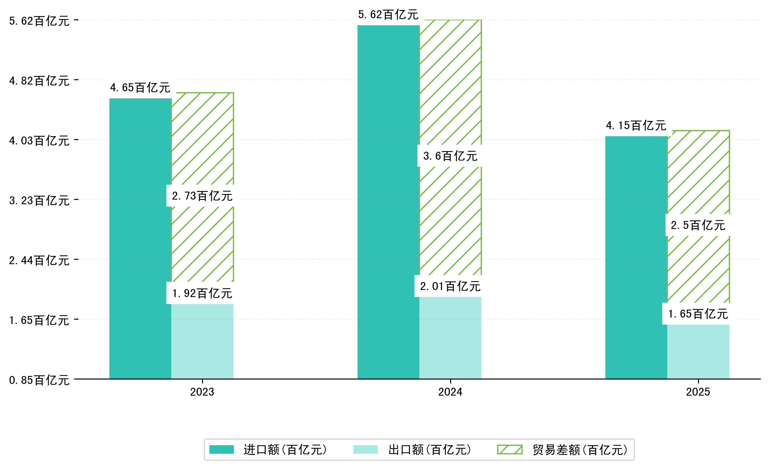 以美元计,2025年7月长春市贸易差额为5,1752,6975万美元(贸易逆差),相比上月减少了892,3203万美元;相比上年同期增加了2,6303,9640万美元,同比增加-33.7%。