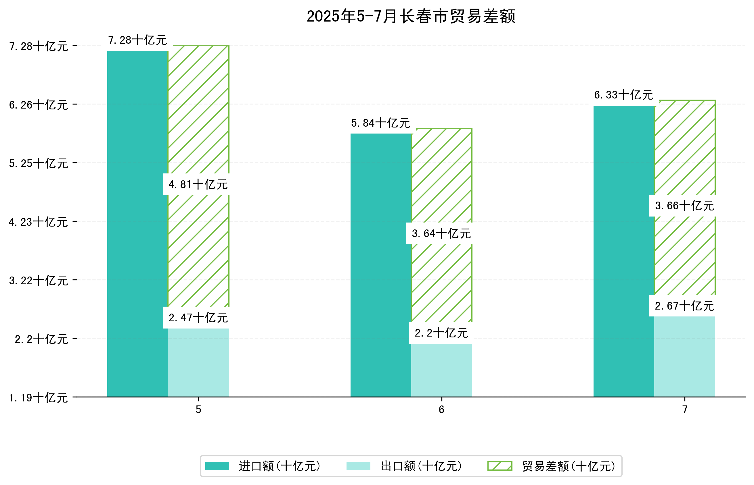 一、2025年7月长春市单月出口总额及进出口差额统计分析