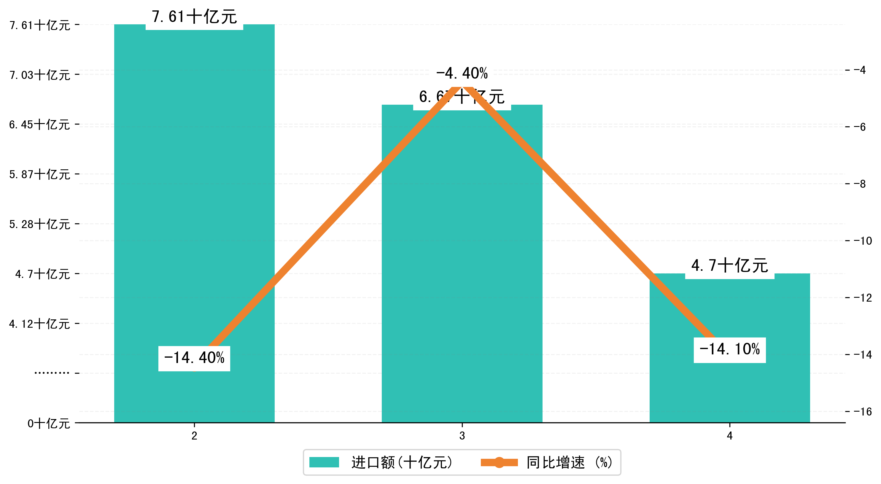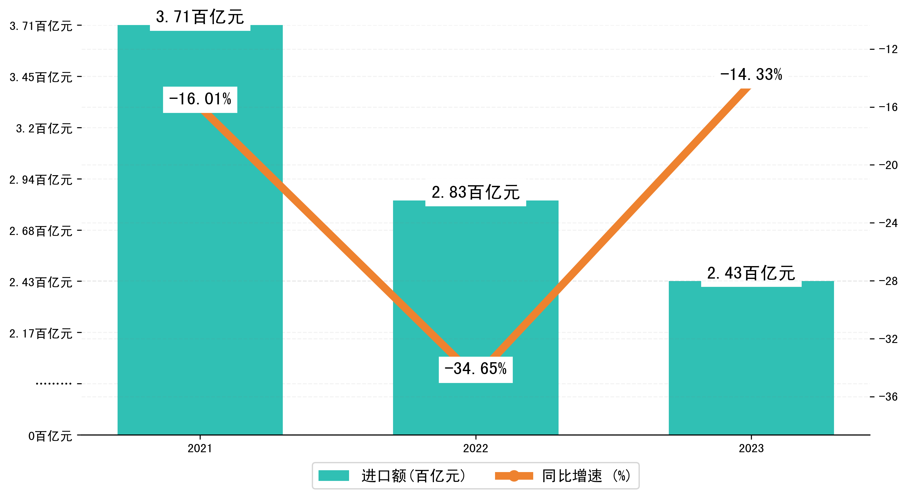 以人民币计,2023年1-4月长春市进口额为242,5747.1792万元,相比上年同期减少了40,5720.4358万元,同比减少了-14.10%。