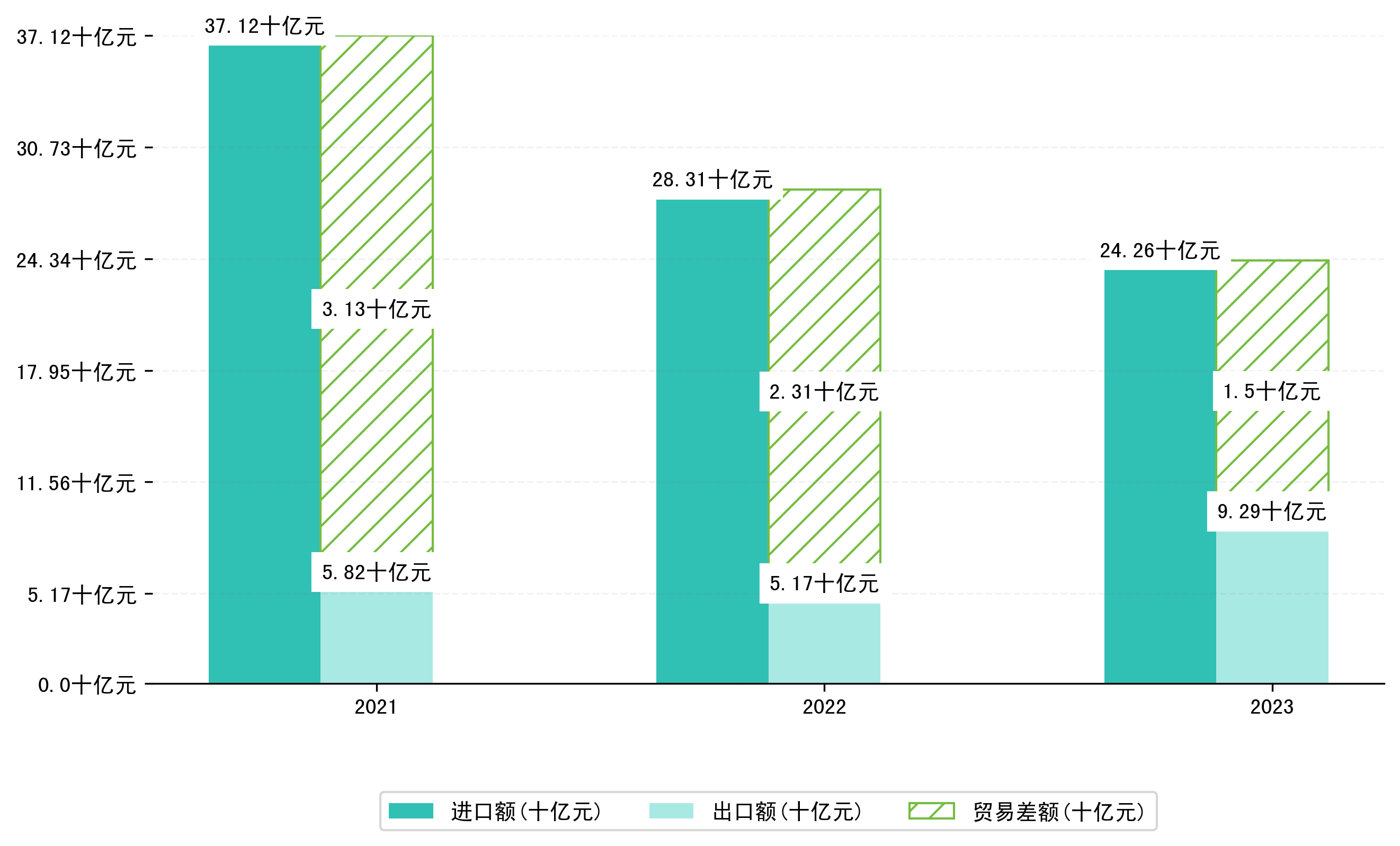 以人民币计,2023年1-4月长春市贸易差额为149,6307,5670万元(贸易逆差),相比上年同期增加了81,8324,2016万元,同比增加-35.35%。