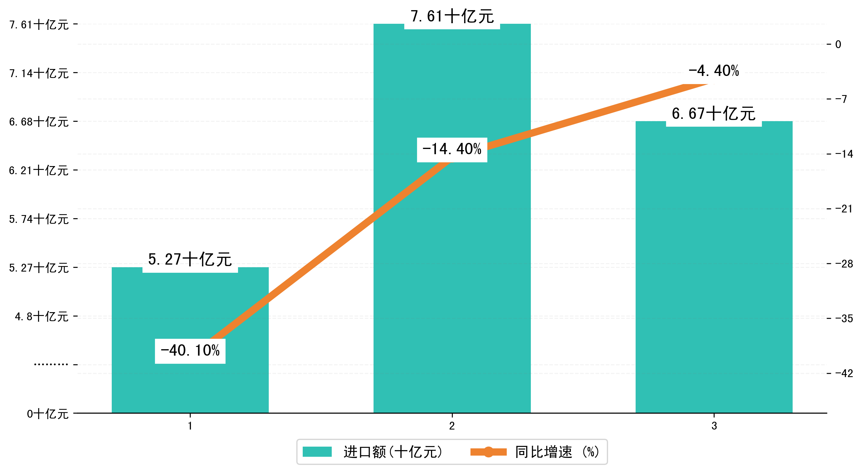 以人民币计,2023年3月长春市进口额为66,7422.3469万元,相比上月减少了9,3832.0445万元;相比上年同期增加了12,6466.6527万元,同比减少了-4.40%。