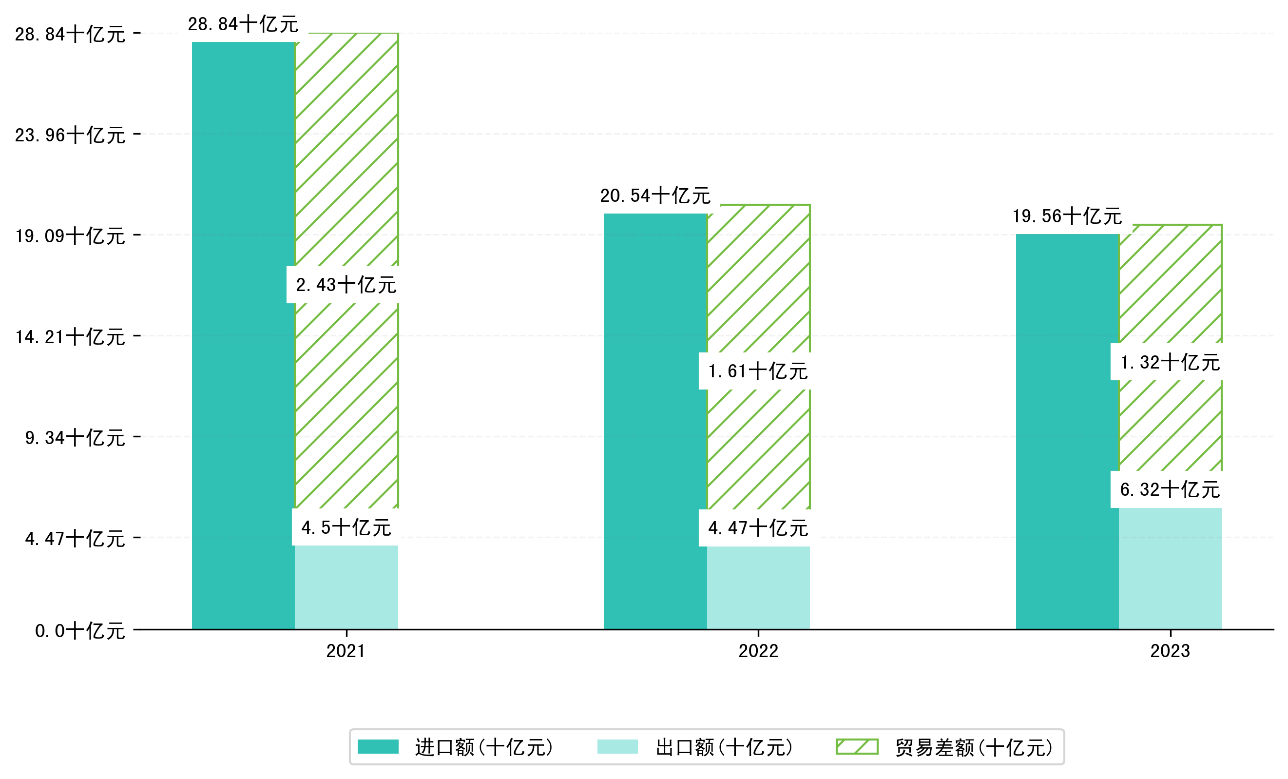 以人民币计,2023年1-3月长春市贸易差额为132,3440,0469万元(贸易逆差),相比上年同期增加了28,3796,9847万元,同比增加-17.66%。