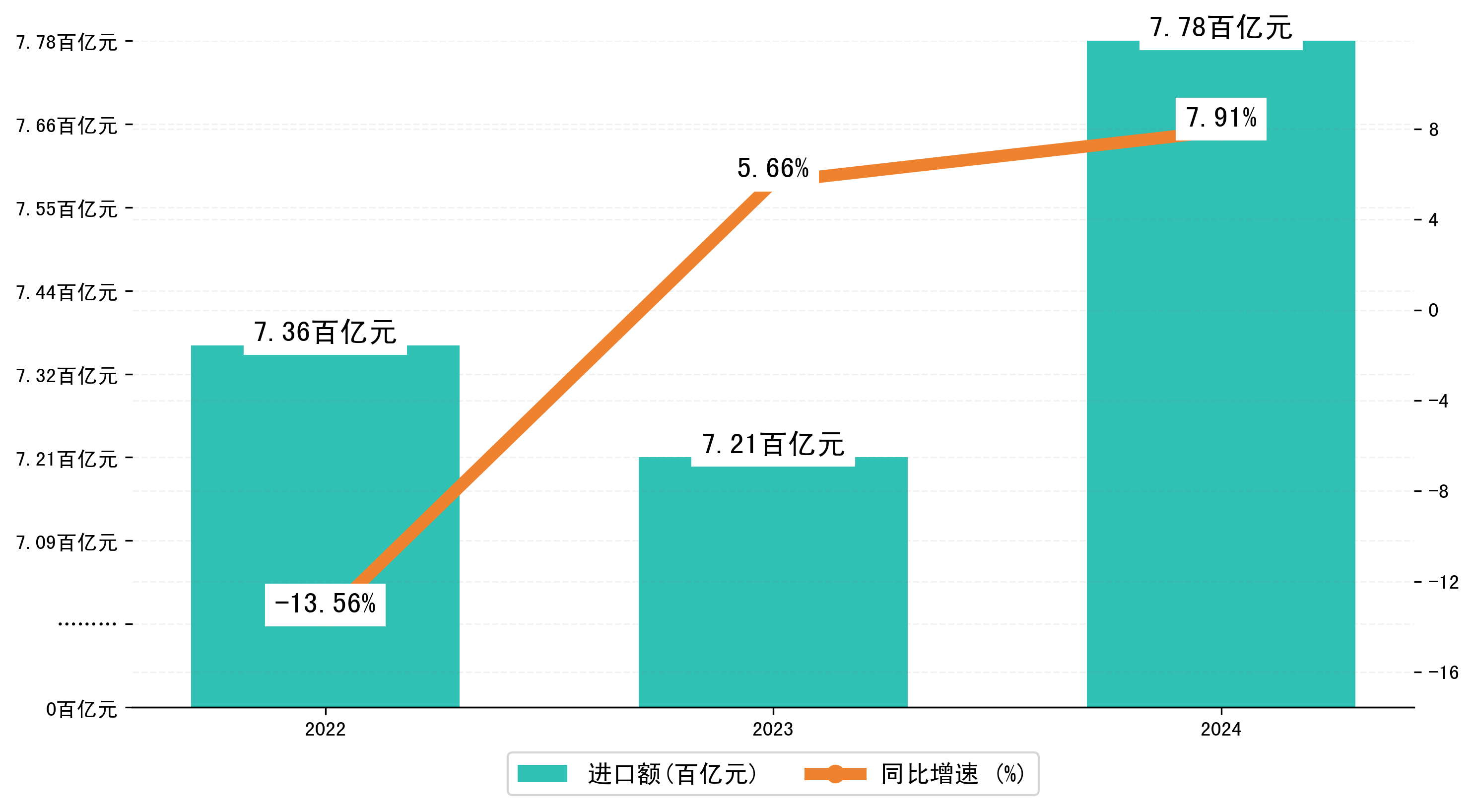 以人民币计,2024年1-10月长春市进口额为777,8183.7613万元,相比上年同期增加了57,0044.9633万元,同比增加了7.90%。