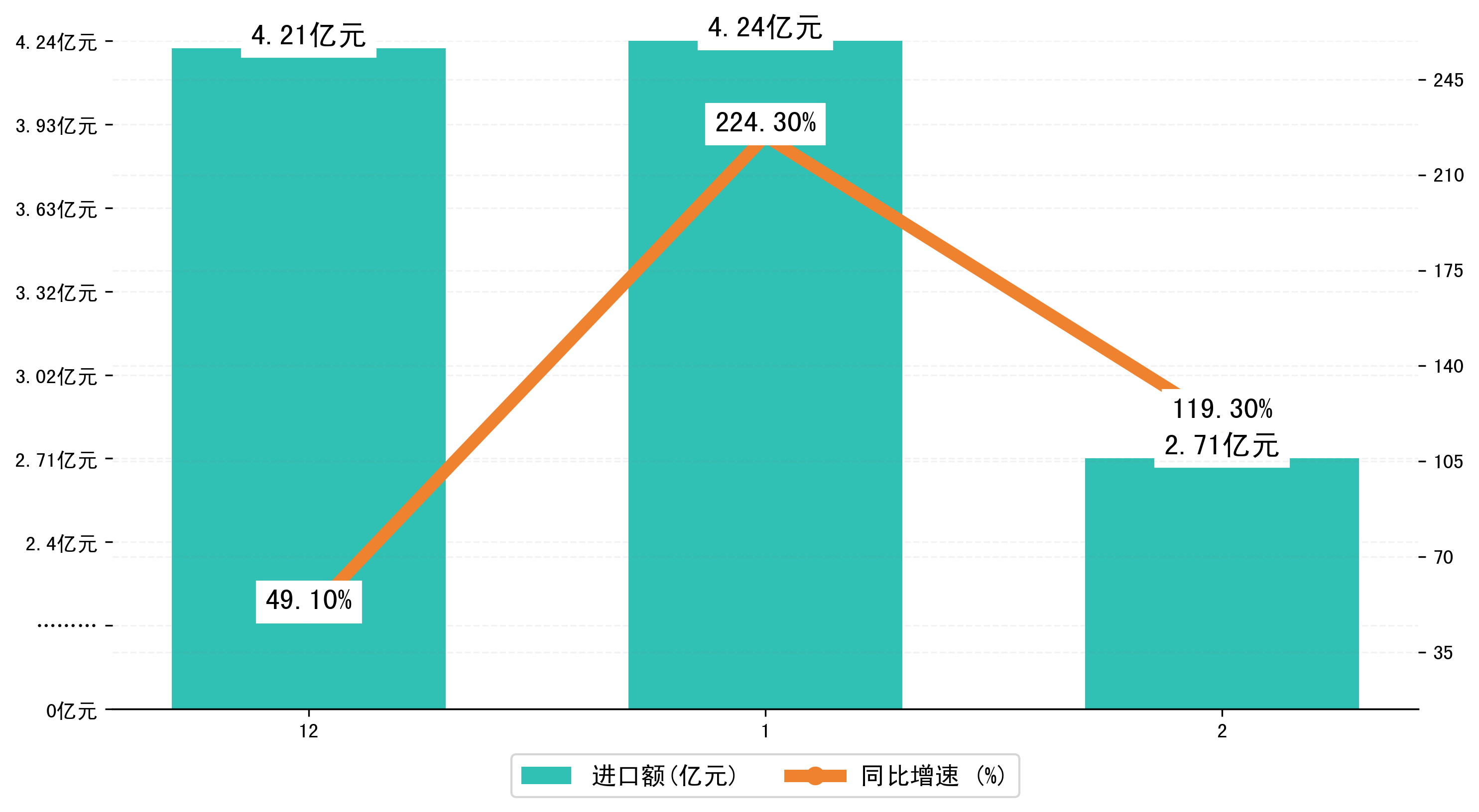 以人民币计,2023年2月常德市进口额为2,7099.6148万元,相比上月减少了1,5262.0834万元;相比上年同期增加了8488.8182万元,同比增加了119.30%。