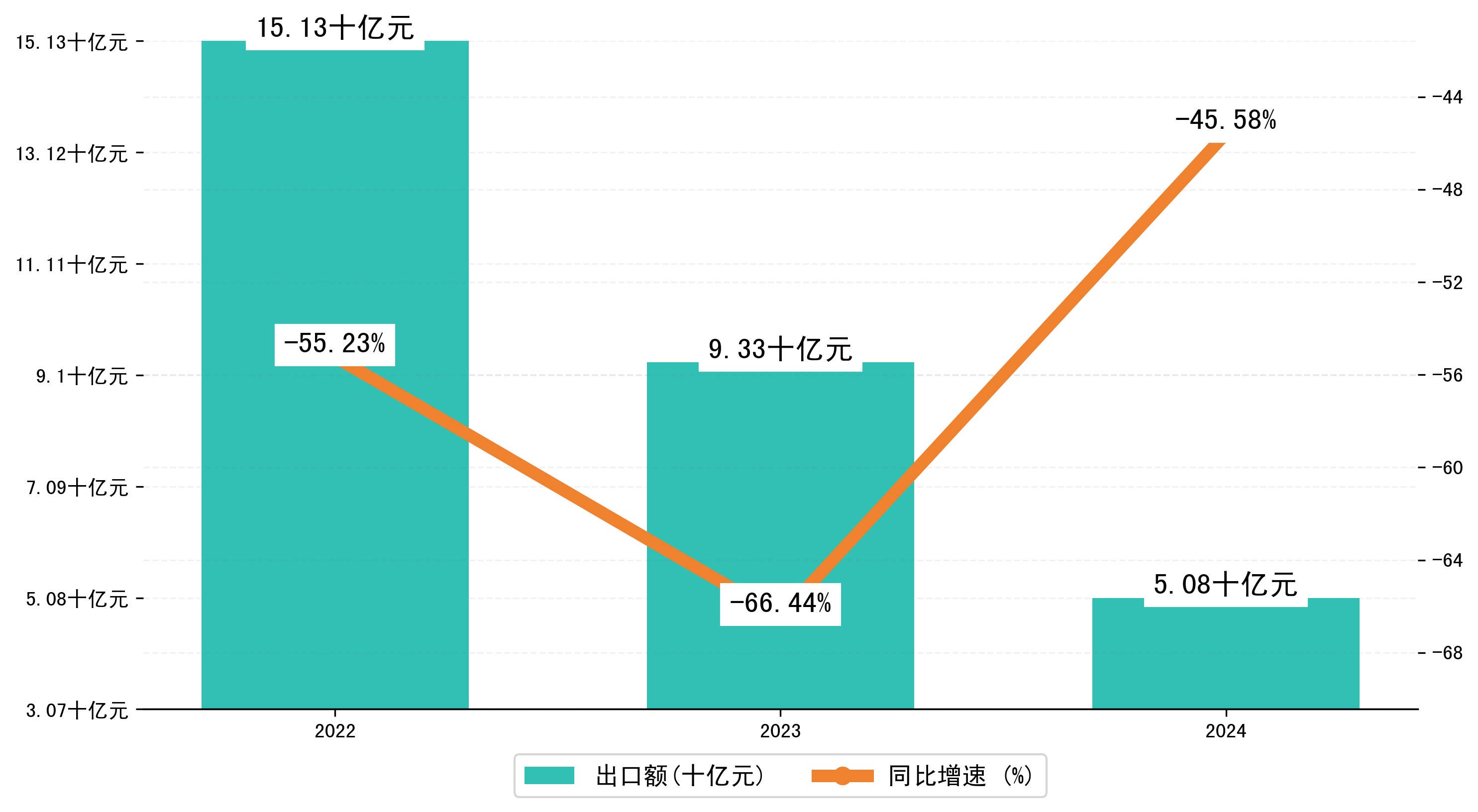 以美元计,2024年1-9月常德市出口额为7,1397.8918万美元,相比上年同期减少了6,2664.7487万美元,同比减少-49.30%。