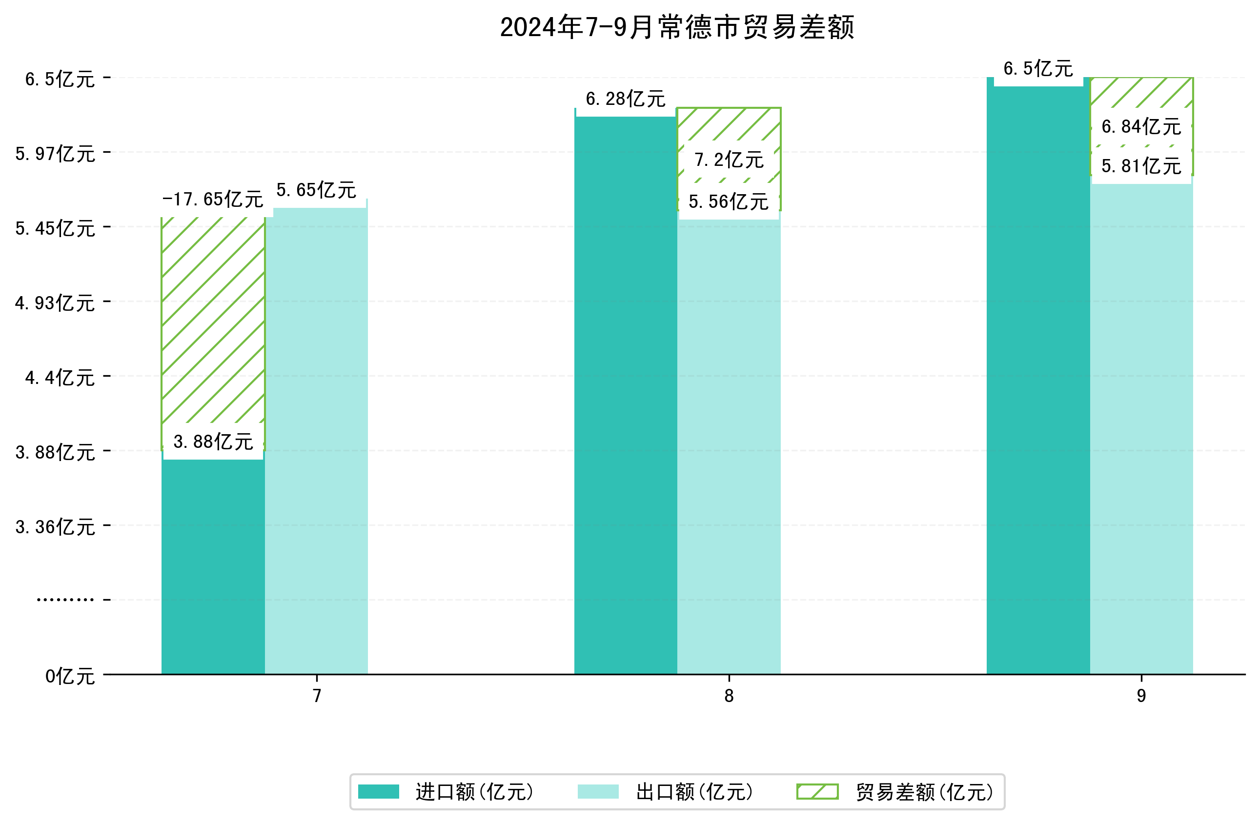 一、2024年9月常德市单月出口总额及进出口差额统计分析