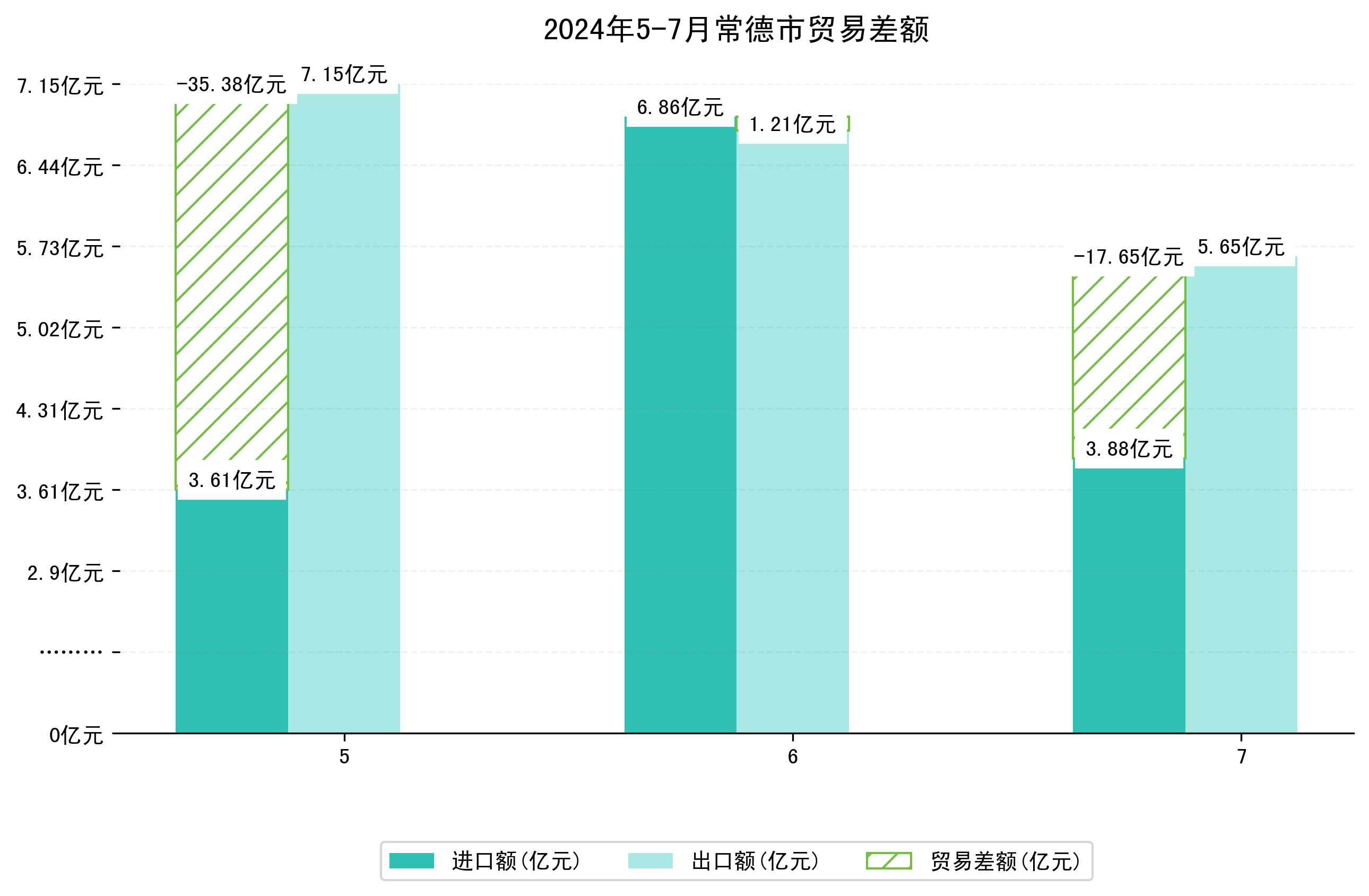一、2024年7月常德市单月出口总额及进出口差额统计分析
