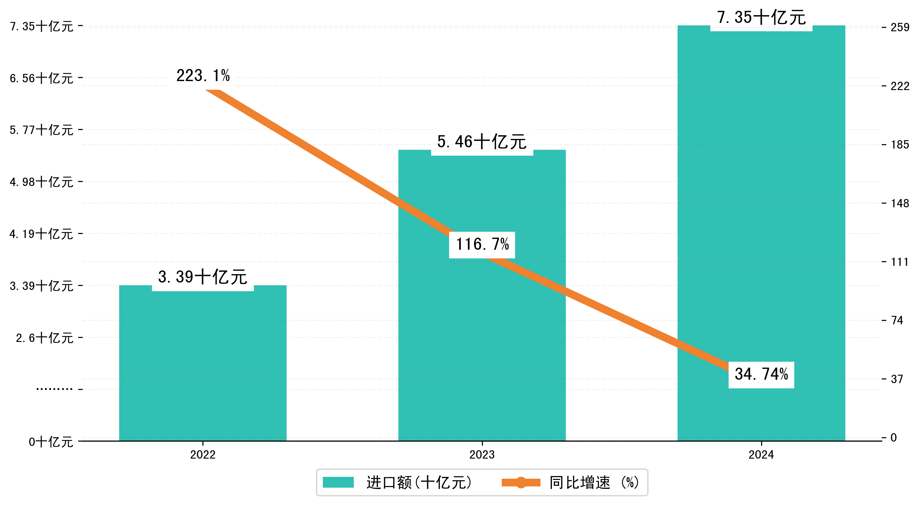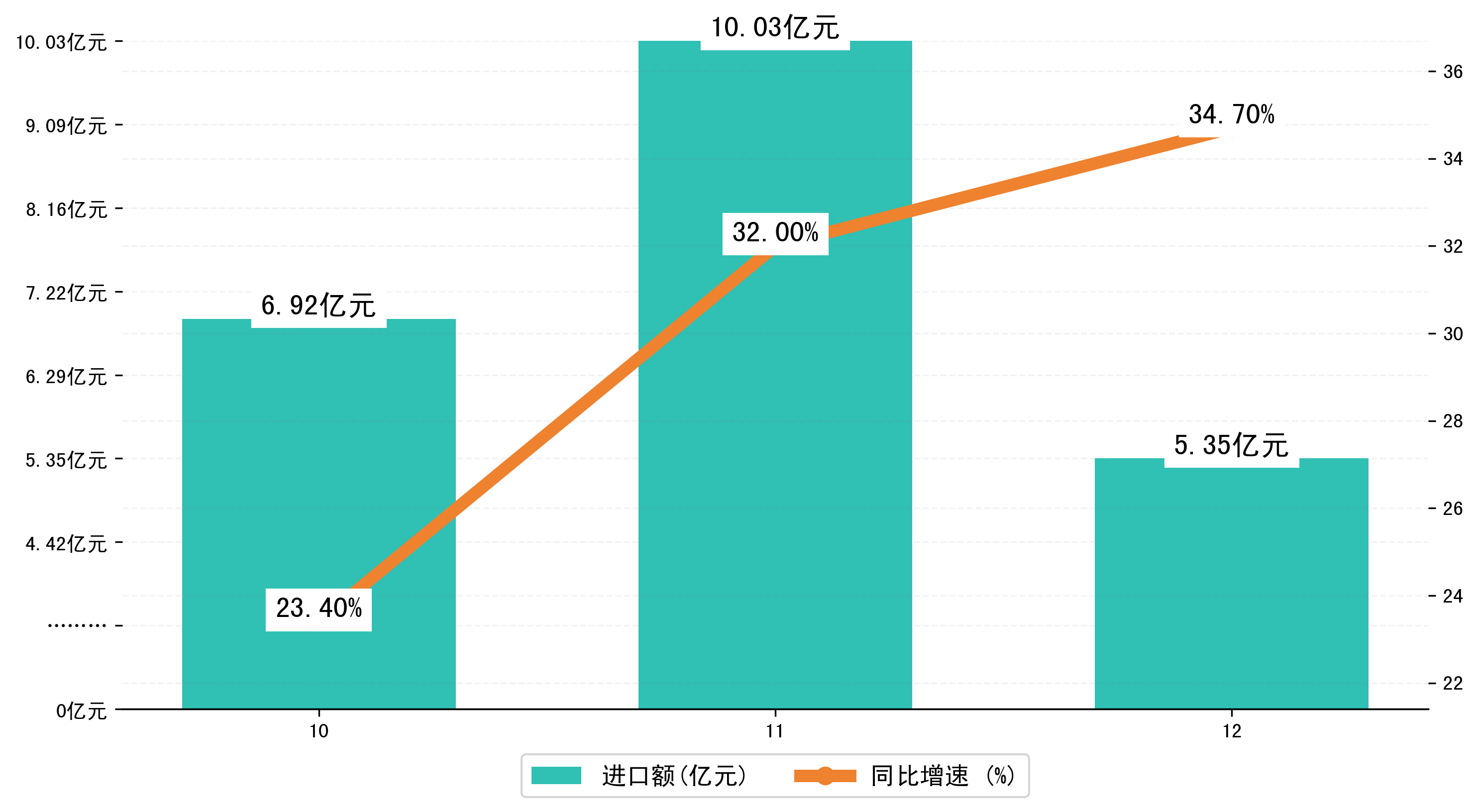 以人民币计,2024年1-12月常德市进口额为73,5488.4356万元,相比上年同期增加了18,9634.1792万元,同比增加了34.70%。