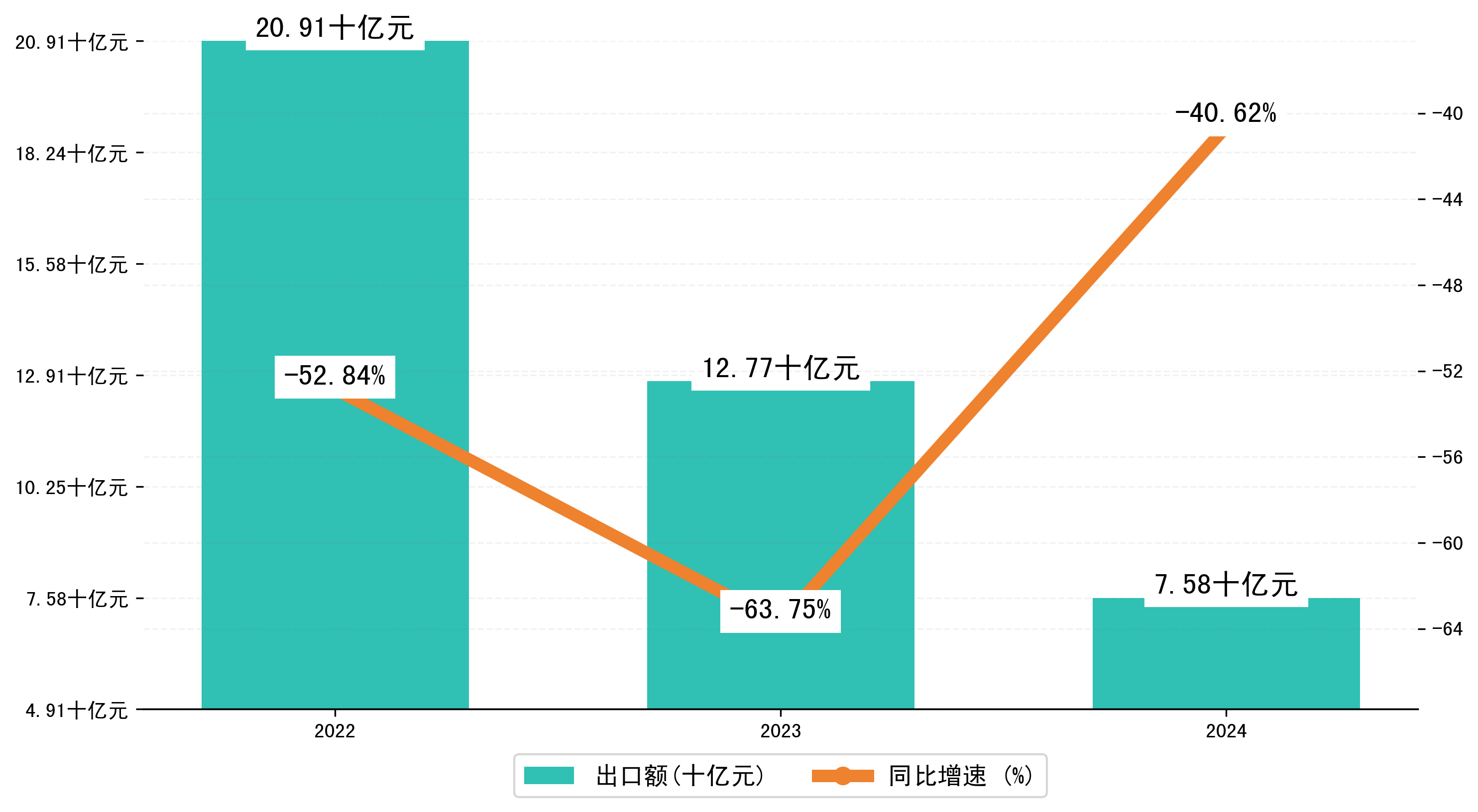 以人民币计,2024年1-12月常德市出口额为75,8064.4618万元,相比上年同期减少了51,8617.3063万元,同比减少了-40.60%。