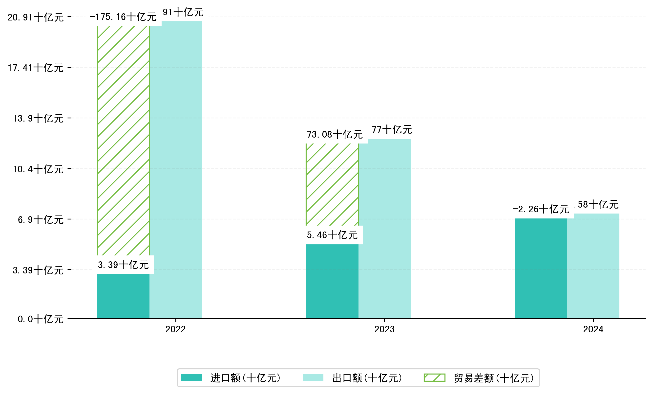 以人民币计,2024年1-12月常德市贸易差额为2,2576,0262万元(贸易顺差),相比上年同期减少了70,8251,4855万元,同比减少-96.91%。