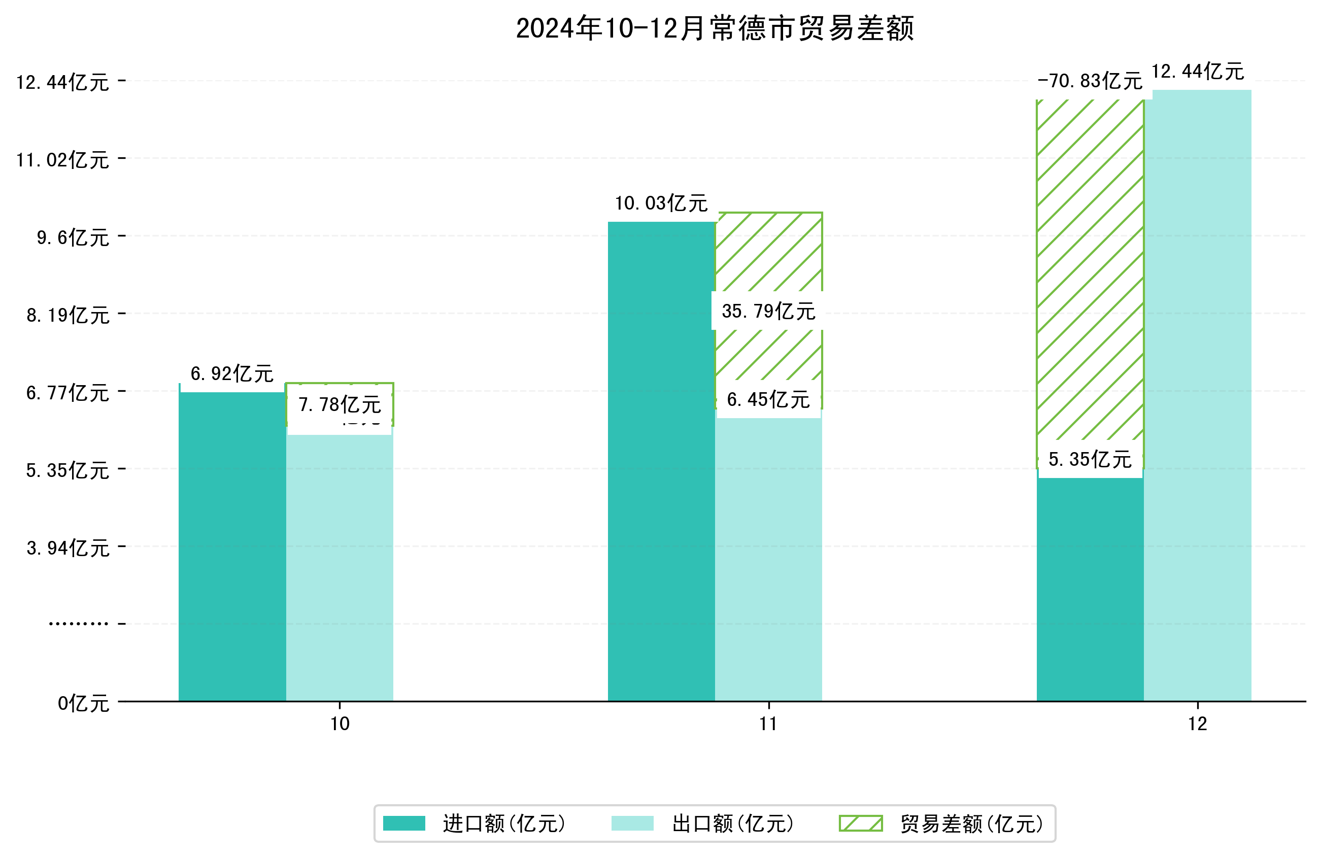 一、2024年12月常德市单月出口总额及进出口差额统计分析
