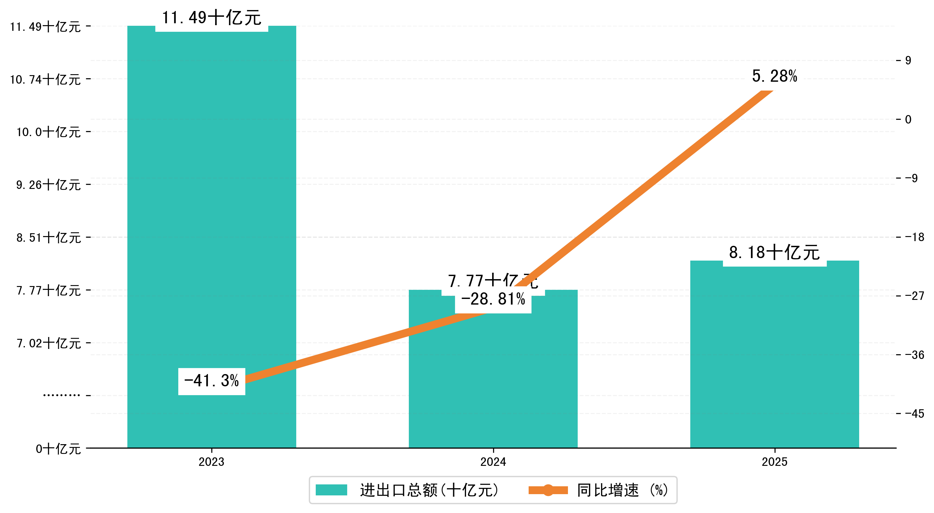 以美元计,2025年1-7月常德市进出口总额为11,3844.9035万美元,相比上年同期增加了4477.5023万美元,同比增加3.90%。