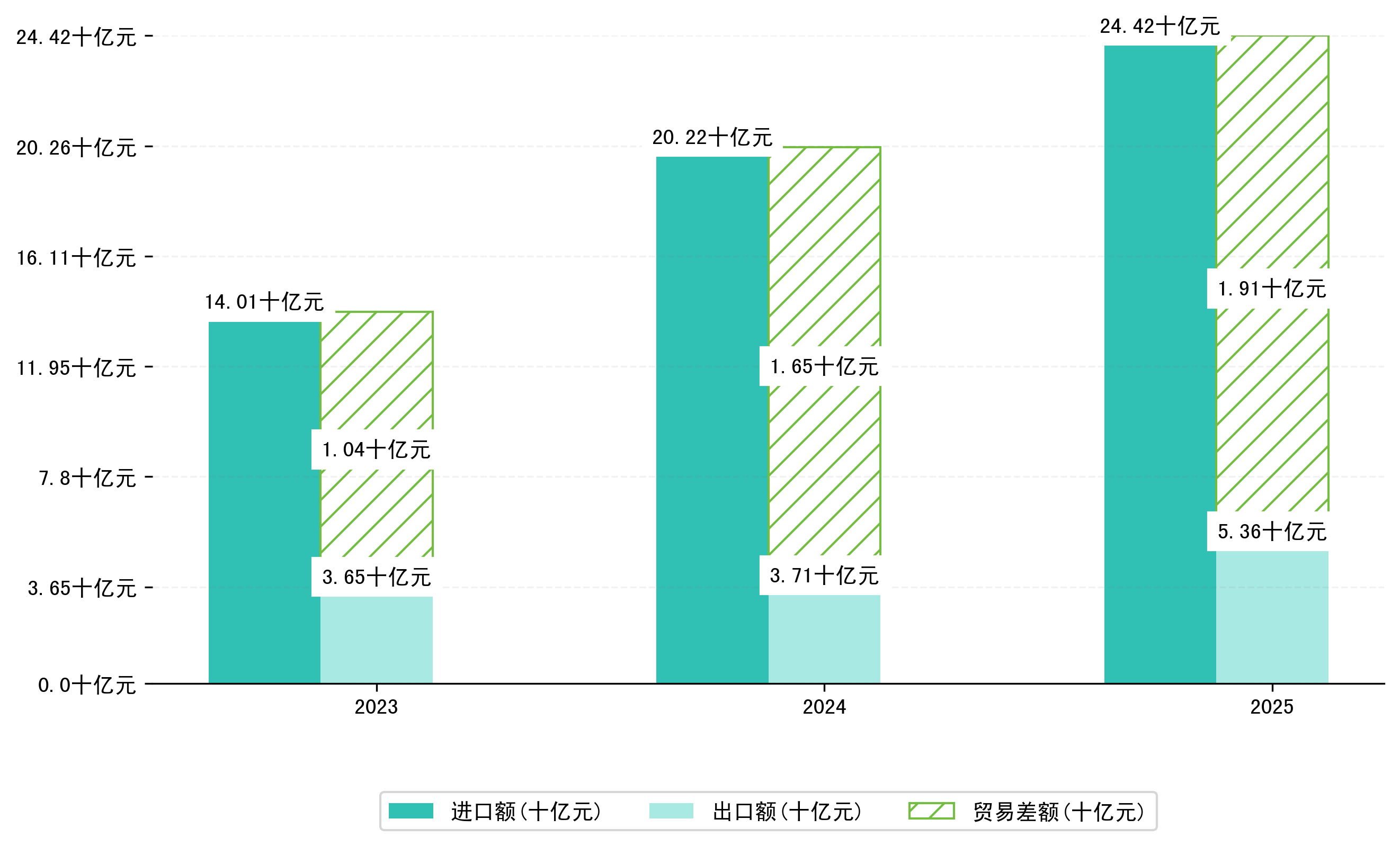 以人民币计,2025年1-8月黑河市贸易差额为190,5305,9415万元(贸易逆差),相比上年同期减少了25,3699,5794万元,同比减少15.36%。