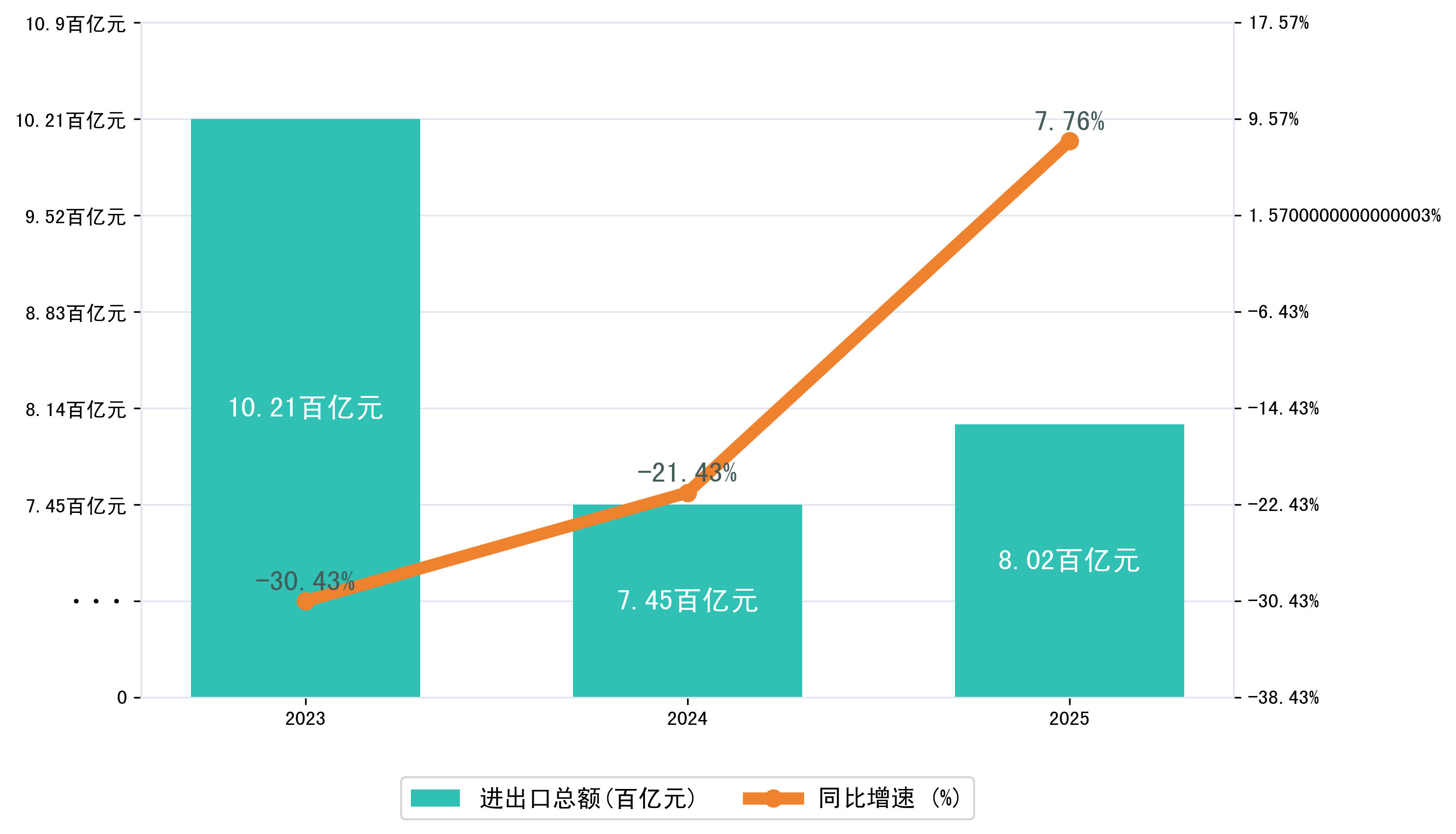 以人民币计,2025年10月南宁市贸易差额为1163,7660万元(贸易顺差),相比上月减少了7,9258,9620万元,即1,1232,9096万美元;相比上年同期增加了1,6630,4062万元,同比增加-107.52%。