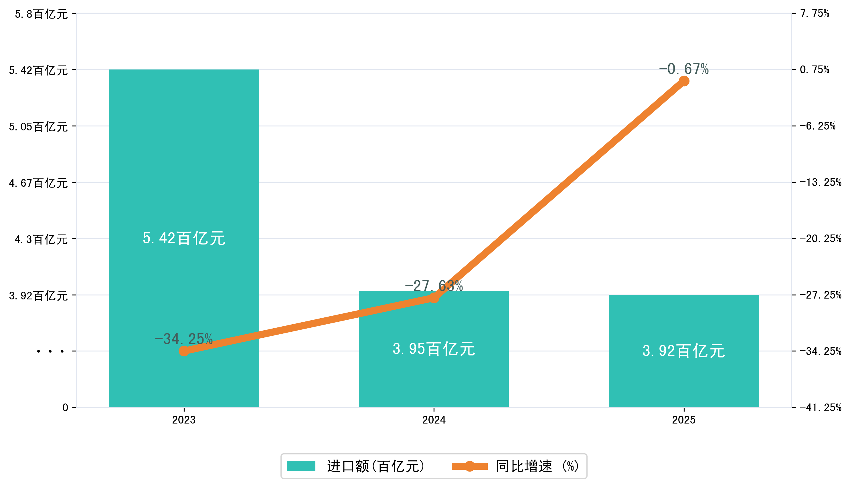 以美元计,2025年1-10月南宁市进口额为54,7146.3818万美元,相比上年同期减少了8287.857万美元,同比增加0.70%。