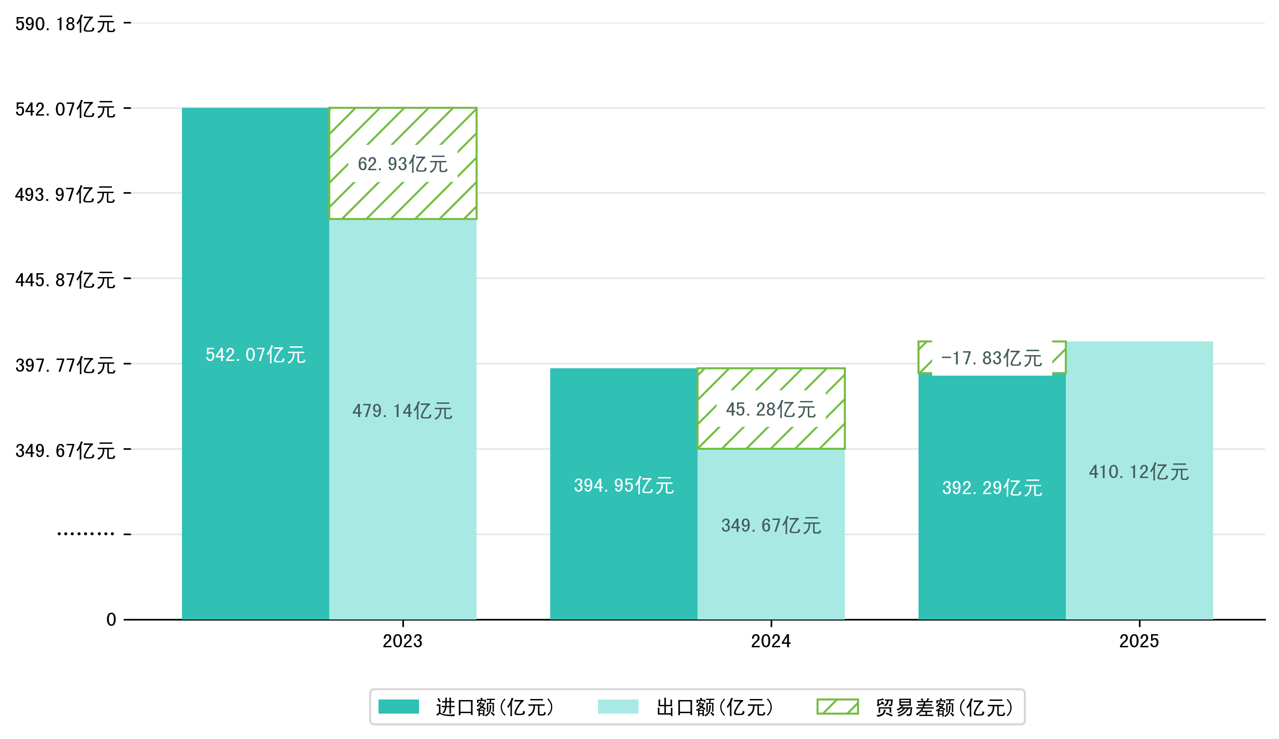 以美元计,2025年1-10月南宁市贸易差额为2,4810,3698万美元(贸易顺差),相比上年同期增加了8,8231,0060万美元,同比增加-139.12%。